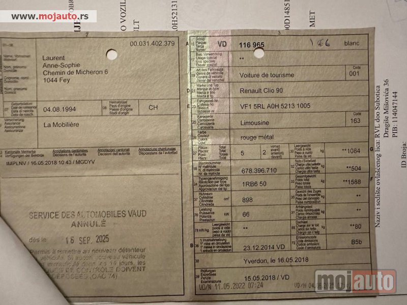 Auto uvežen iz Švajcarske, redovno održavan, sa servisnom knjigom i računima iz servisa, pravom kilometrazom, što se vidi i sa slike sa oglasa.