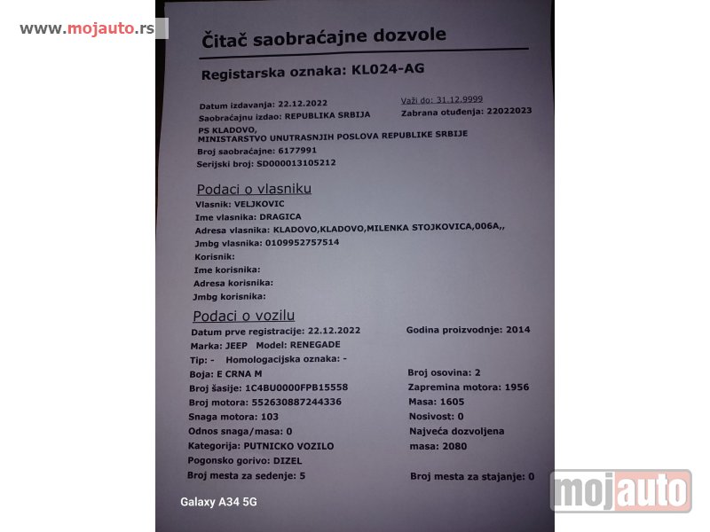 Prodaje se JEEP RENEGADE 2.0 dizel sa automatskim menjacem, realnih 107679 km auto je kupljen nov u nemackoj i uvezen u srbiju pre 5 godina.Redovno je odrzavan u srvisu, skoro je zamenjeno ulje i svi filteri u auto servisu vlada bosanac plus Negotin.Auto poseduje i zimski set guma sa alu felnama koje idu uz njega takodje poseduje i kuku koja je upisana u saobracajnu dozvolu.cena je fixna za sve ostale informacije nazvati broj 063.