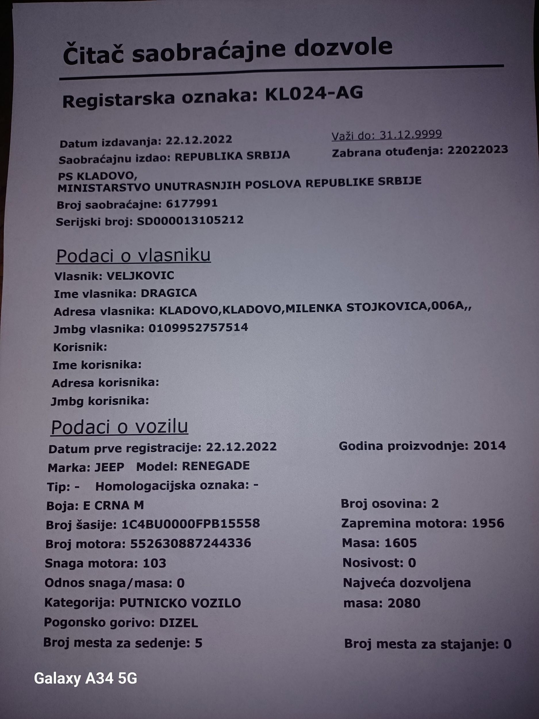- Vozilo je korišćeno kao lično