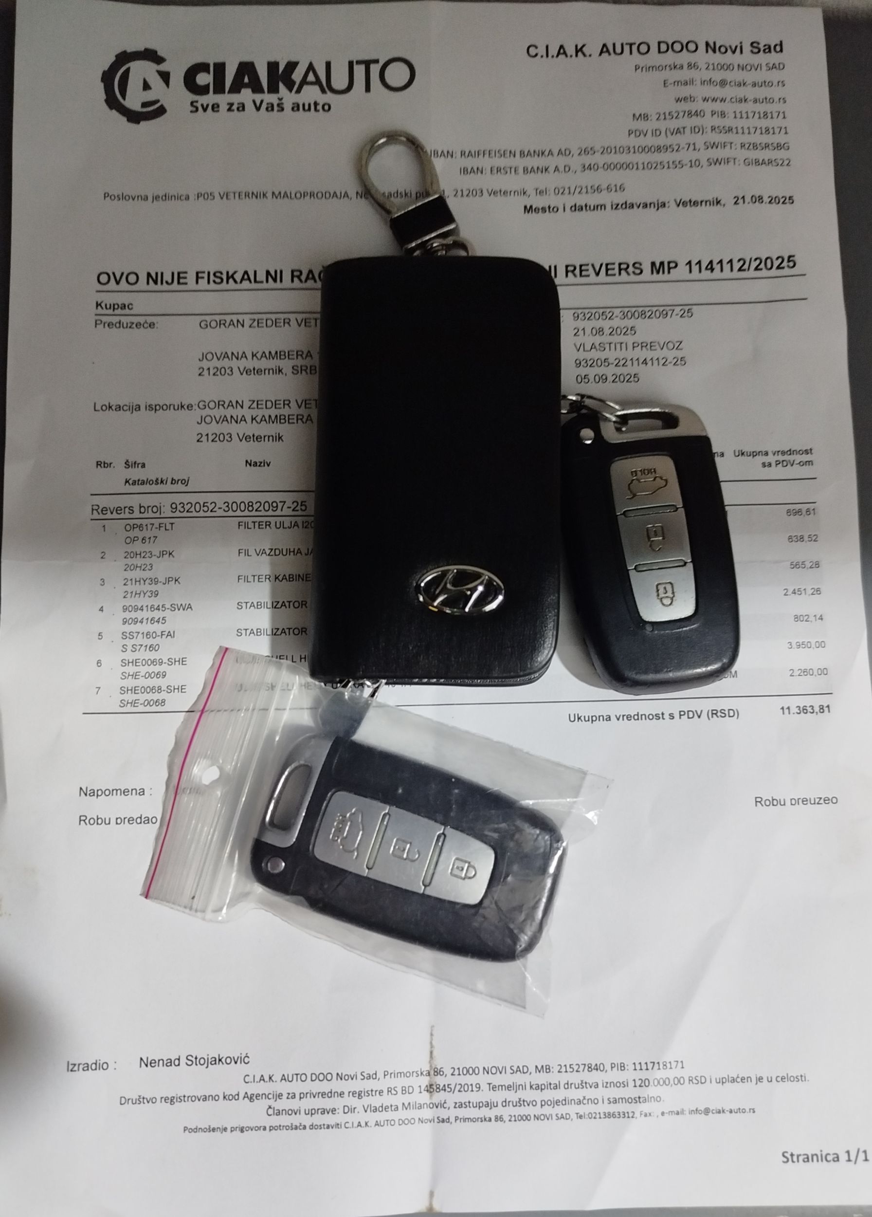 - Na ime kupca Ne