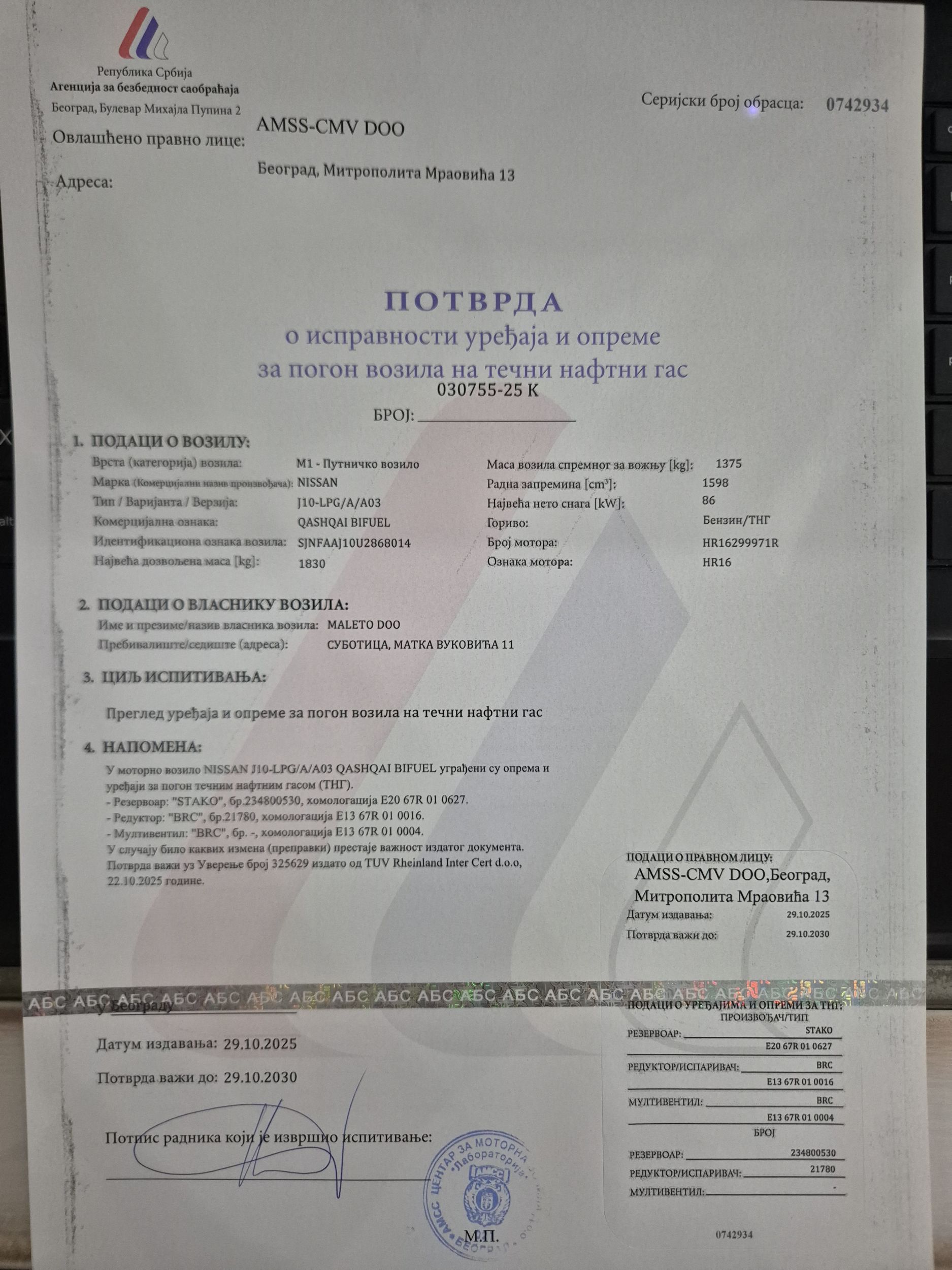 Datum prve reg 4.3.2014 god
