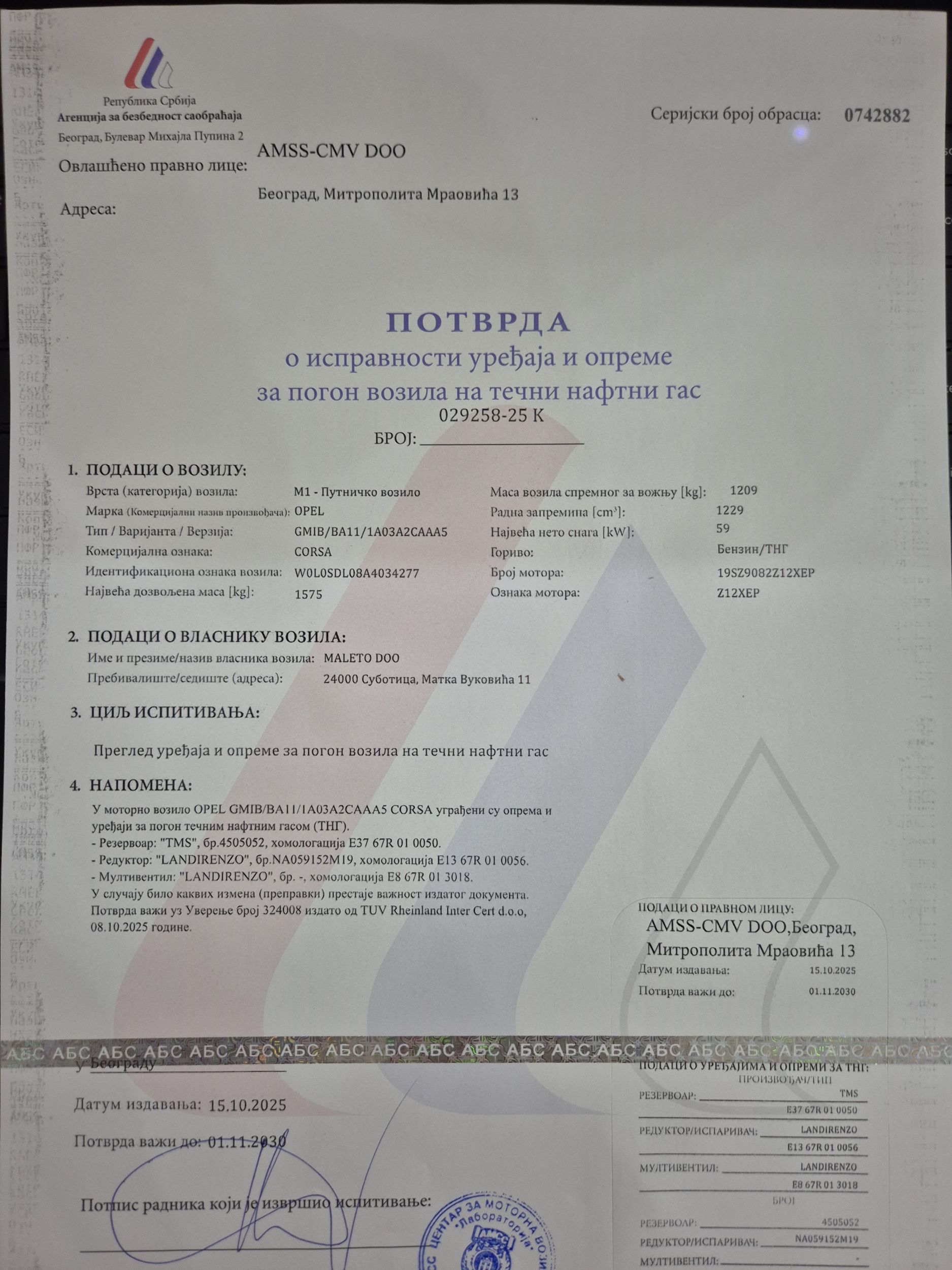 Atestiran do 1.11.2030 god