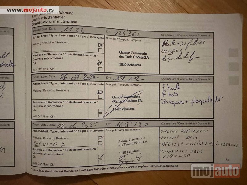 Auto uvežen iz Švajcarske, redovno održavan, sa servisnom knjigom i računima iz servisa, pravom kilometrazom, što se vidi i sa slike sa oglasa u CH.