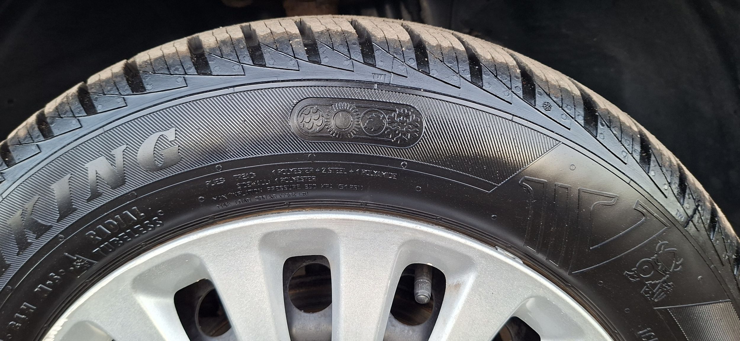 SVE 4 ODLICNE CELOGODISNJE GUME ( mogu se voziti i leti i zimi tako da nemate potrebu za rezervnim setom guma i tockova )