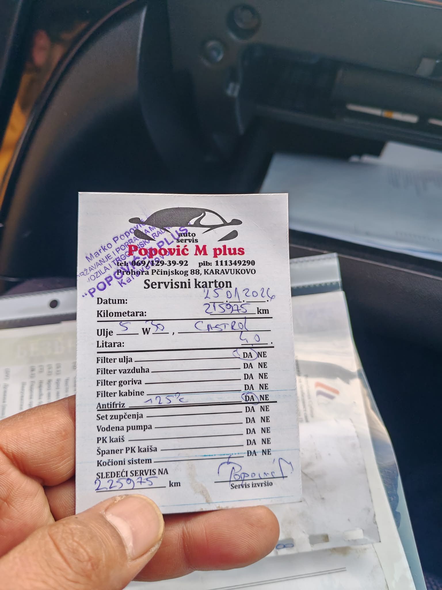 - Servisna knjižica Da