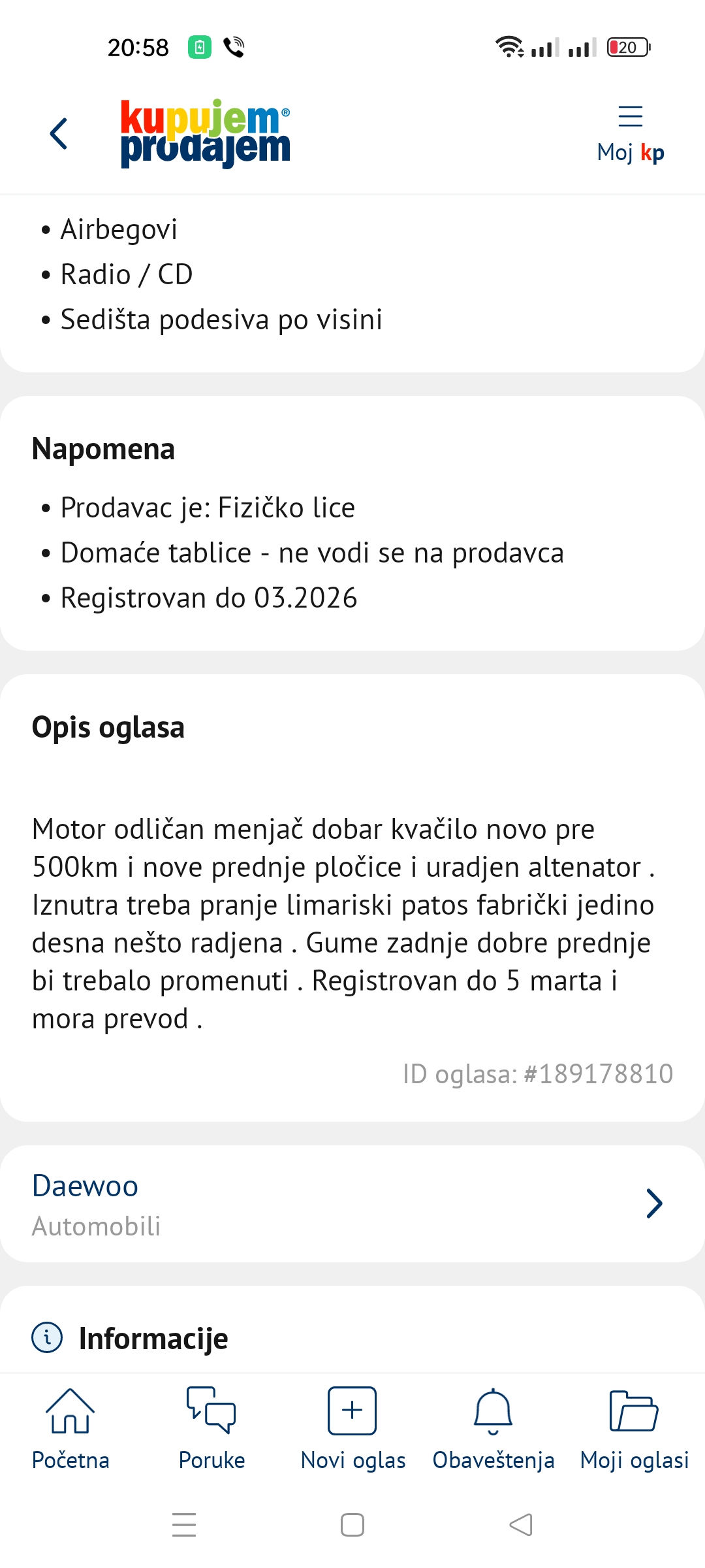 - Vozilo je polovno