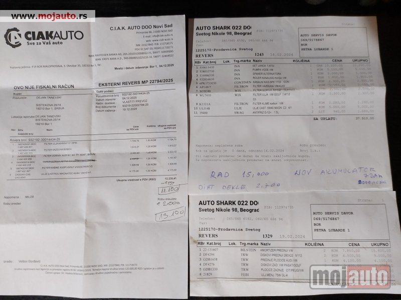 Uloženo na autu 180000 dinara sa registracijom gumama , servisima i delovima