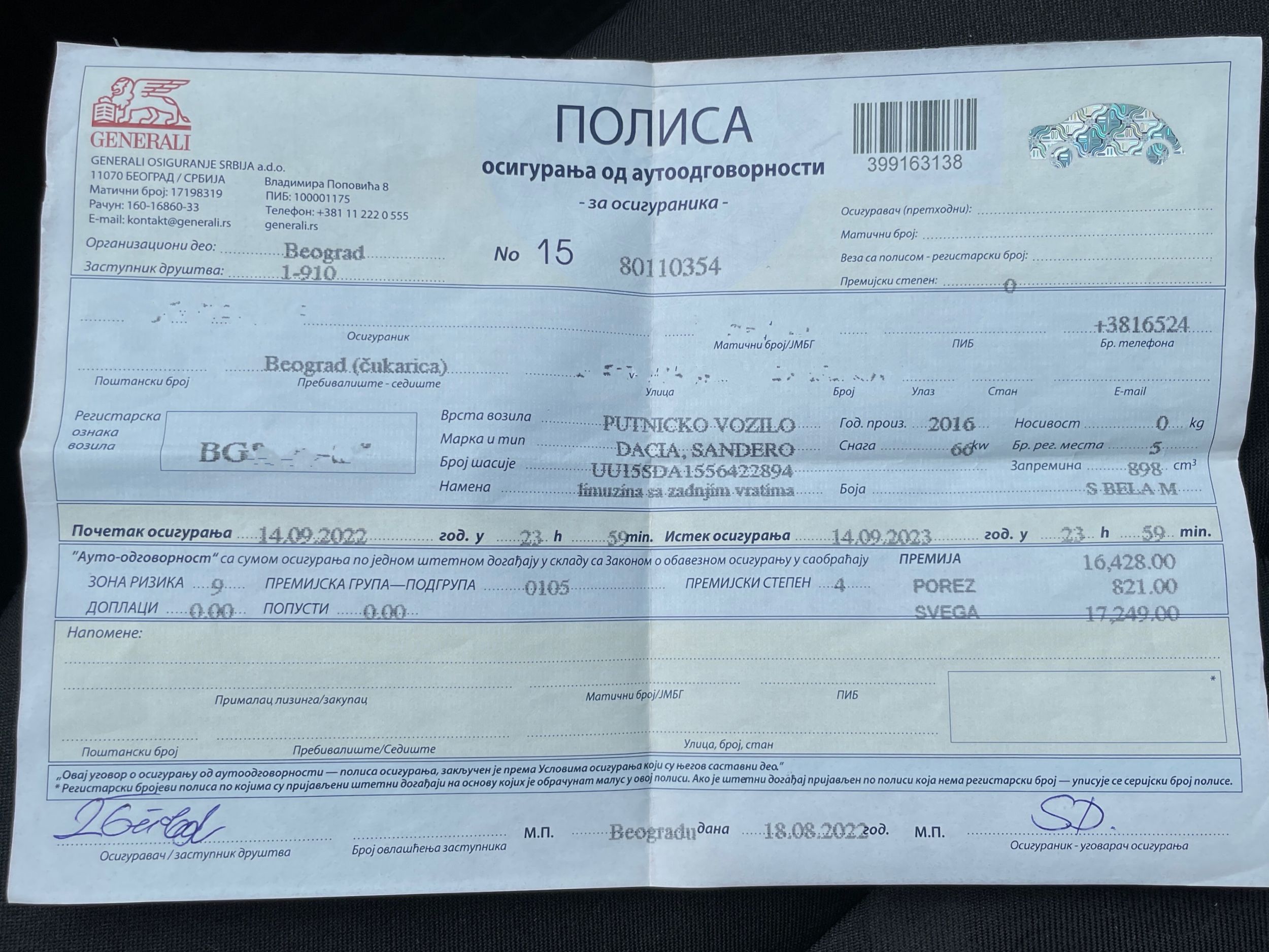 - Vozilo je korišćeno kao lično