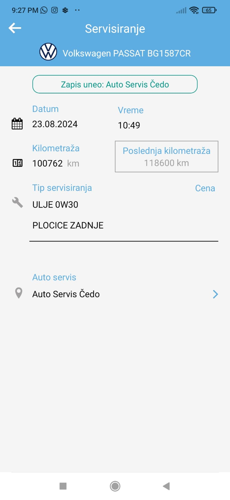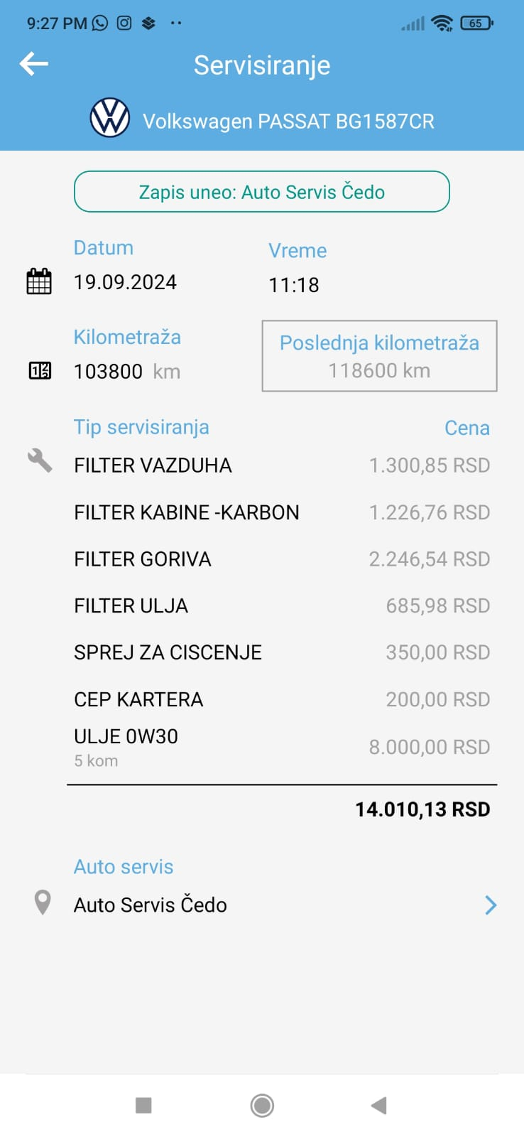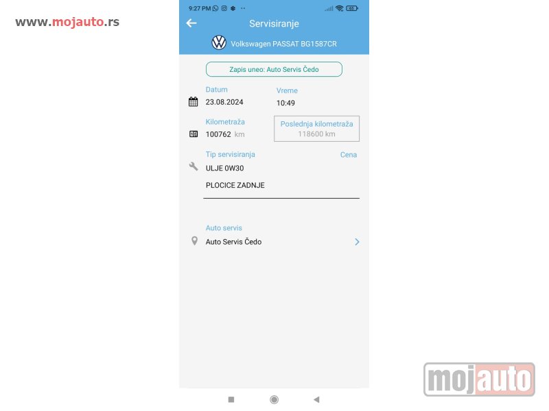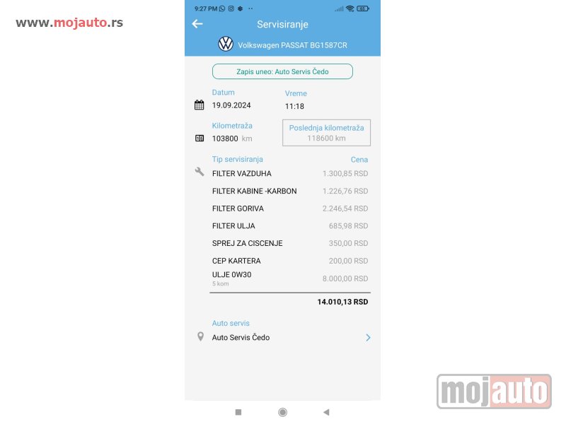 Urađen veliki servis i servis DSG menjača (ispiranje, zamena ulja i filtera).