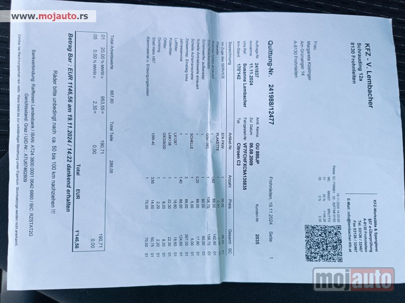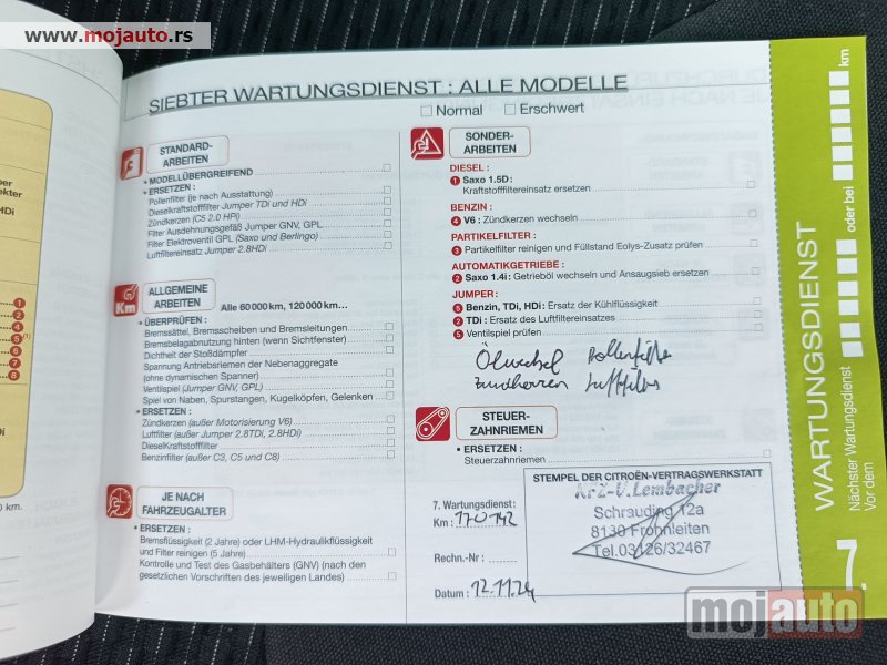 174000 km pređenih, postoji orginal servisna knjiga na 170000km rađen servis u zemlji uvoza, uloženo dosta preko 1000e.