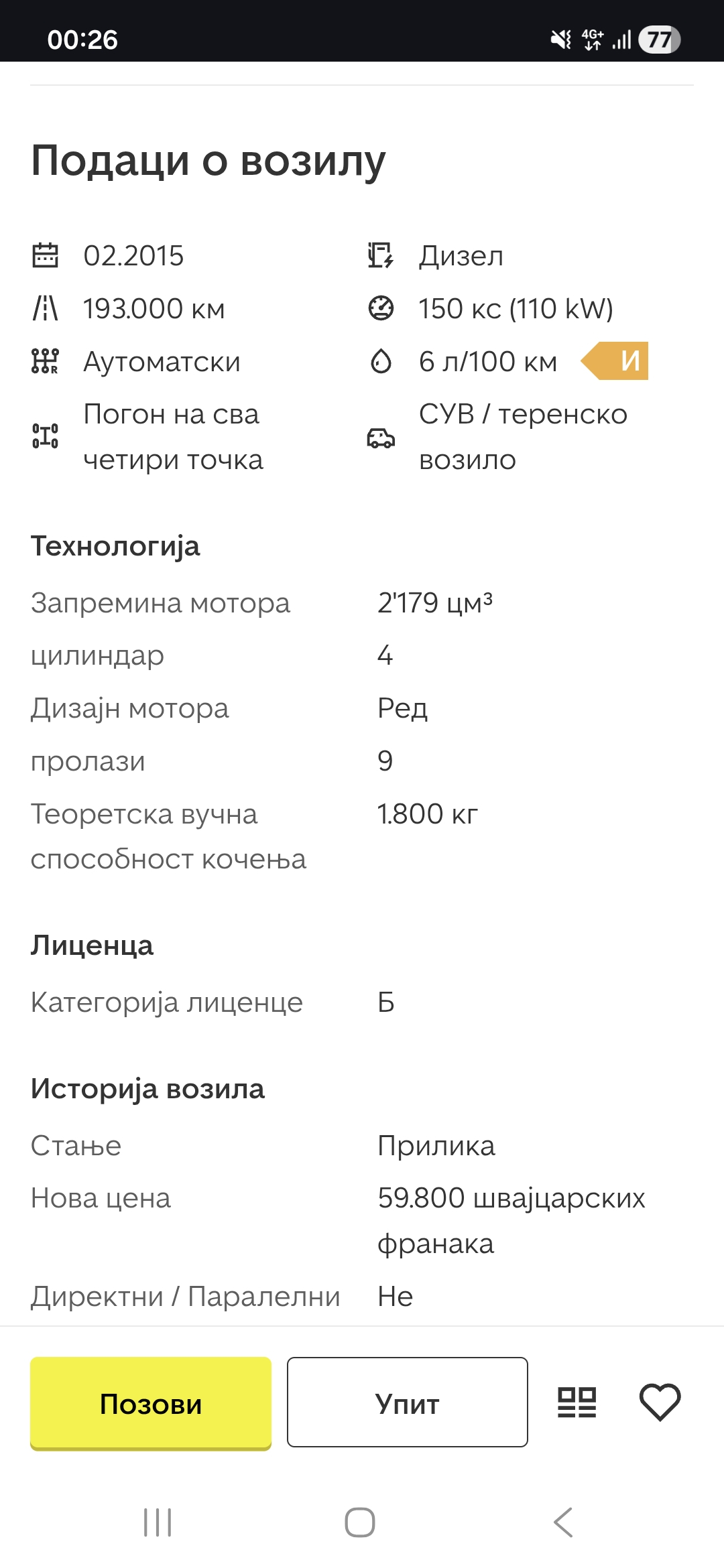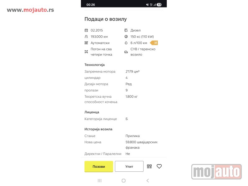 - Vozilo je polovno