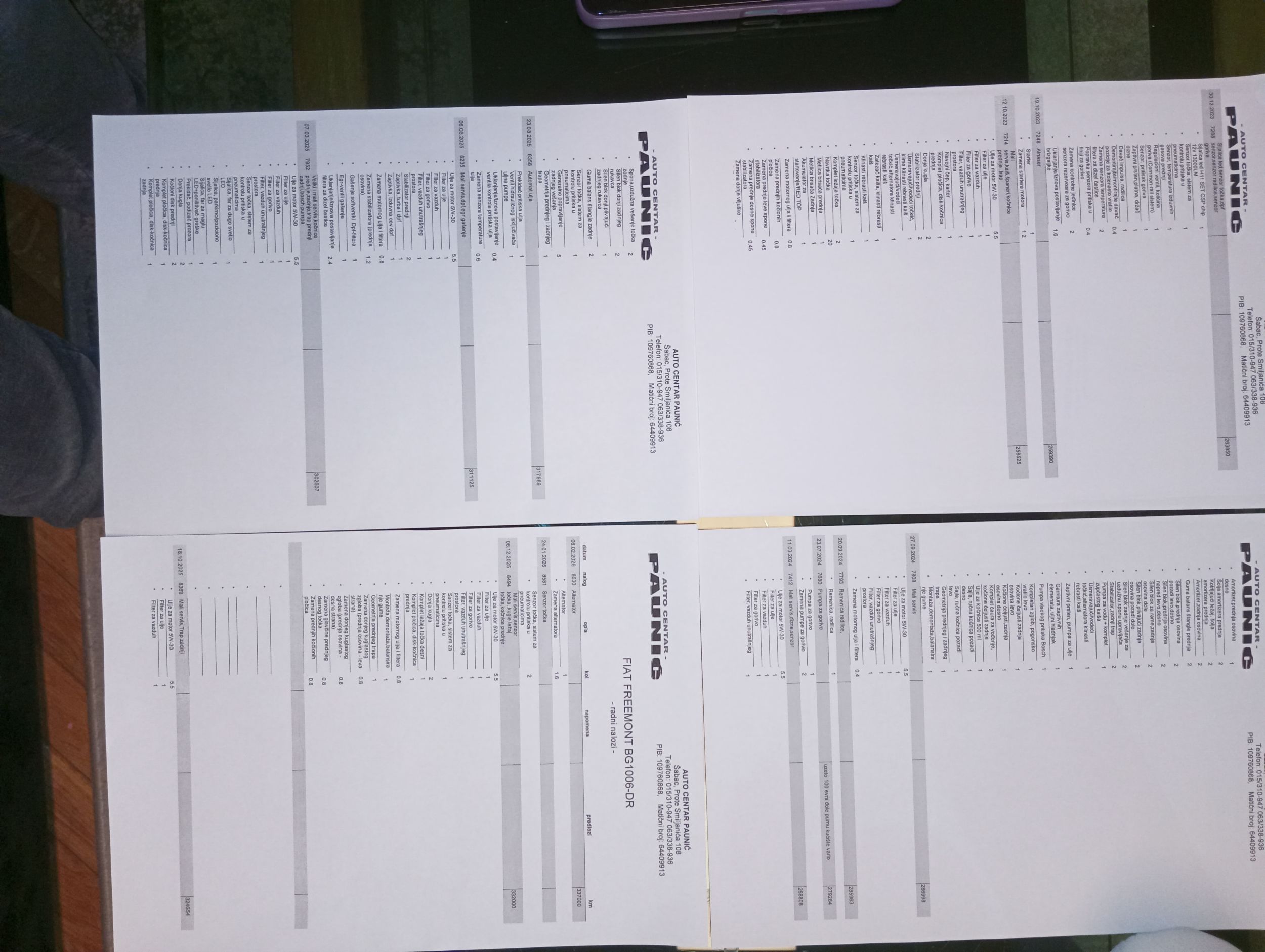 Servisna istorija od 2022 god. u istom servisu