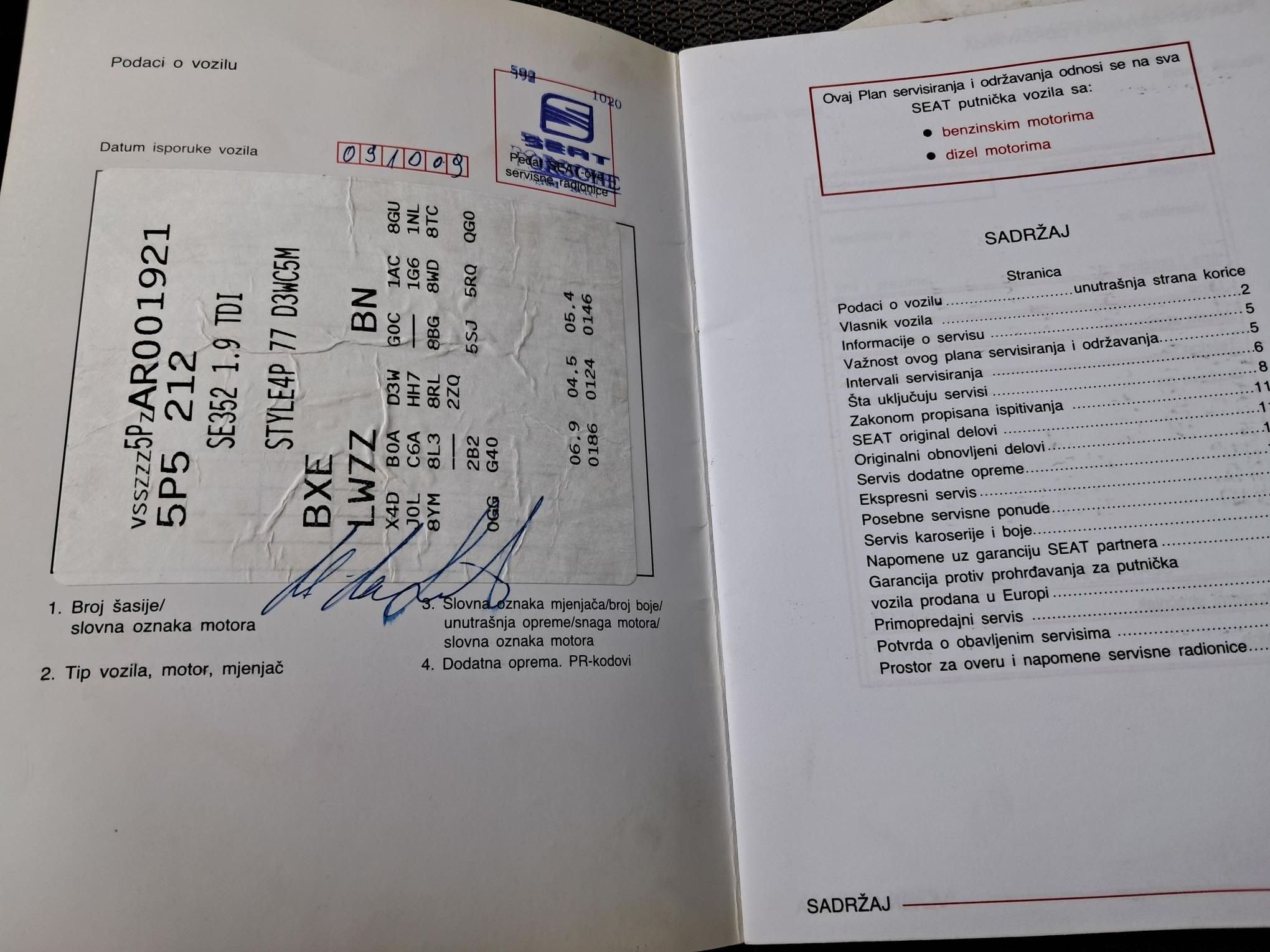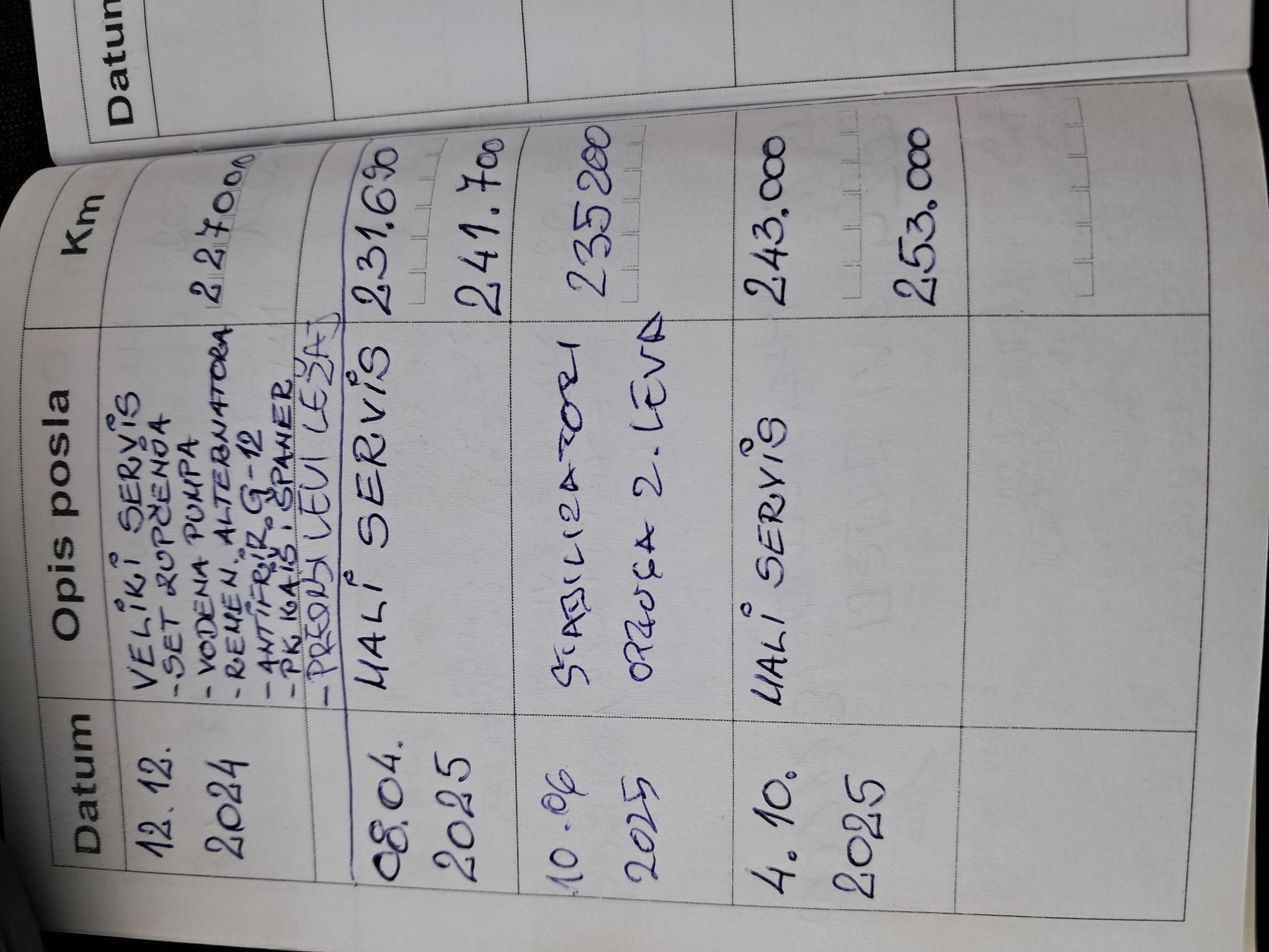 - Servisna knjižica Da