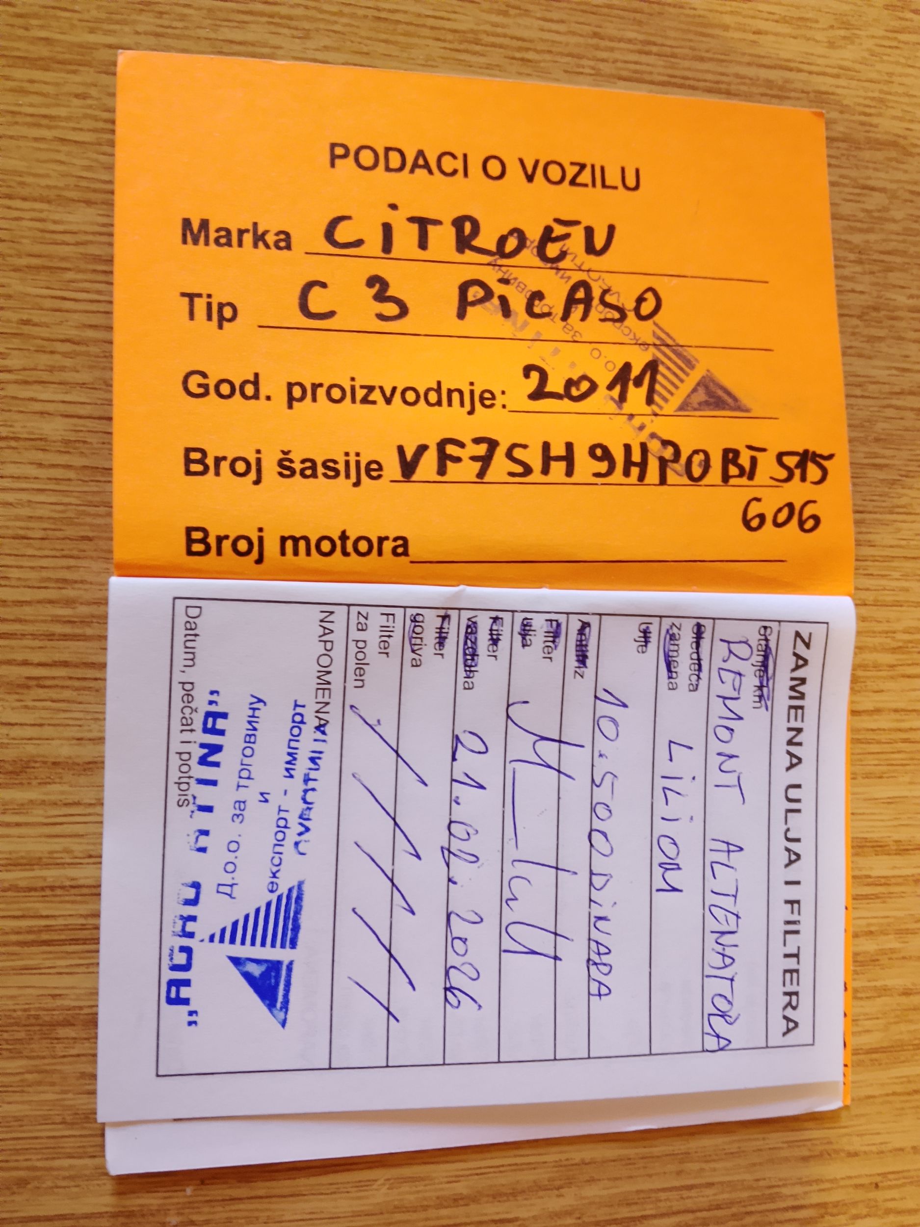 - Servisna knjižica Da