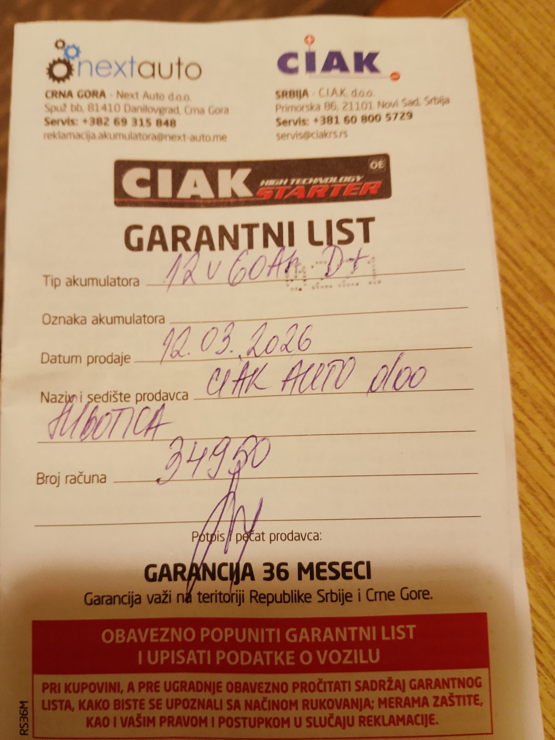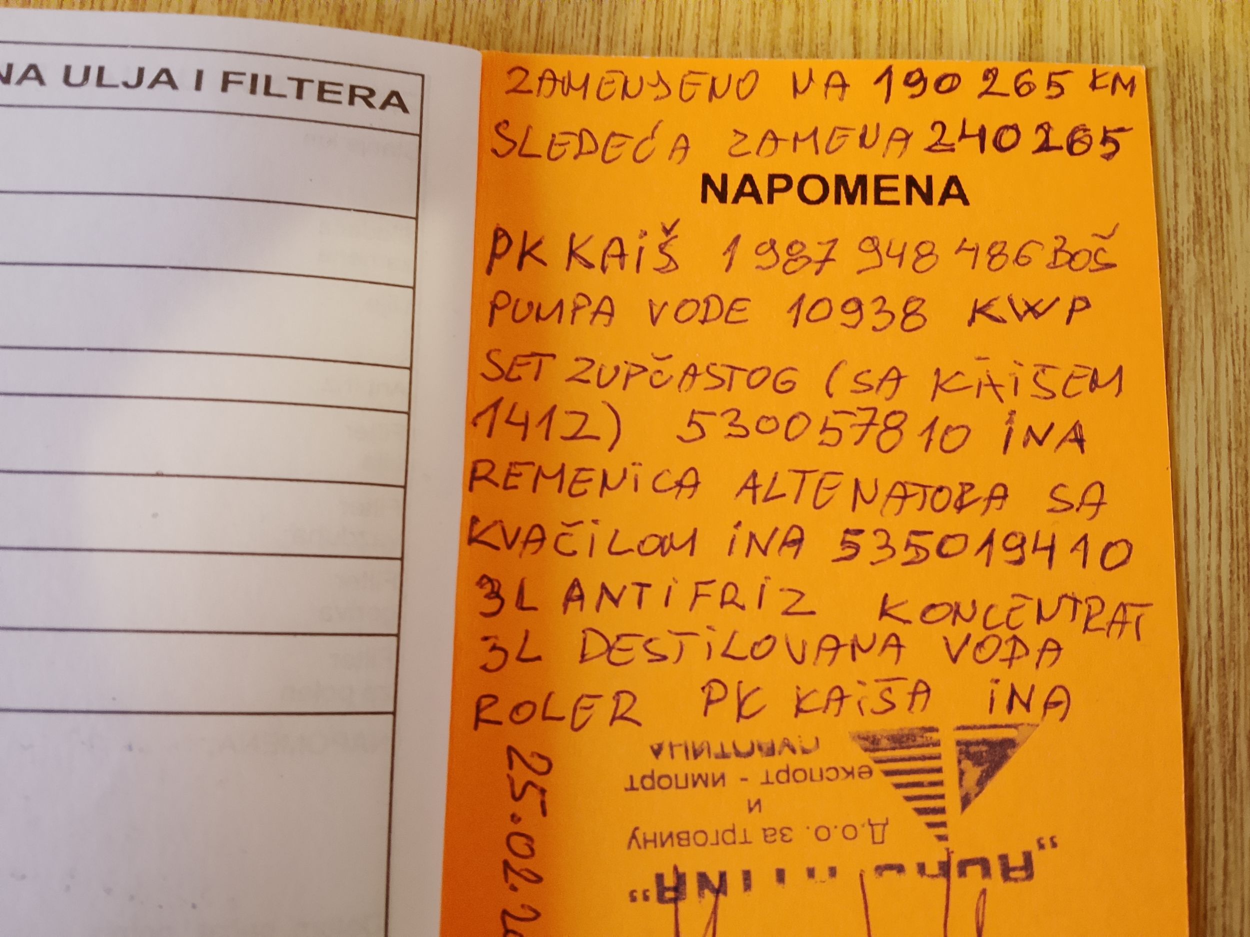 - Servisna knjižica Da