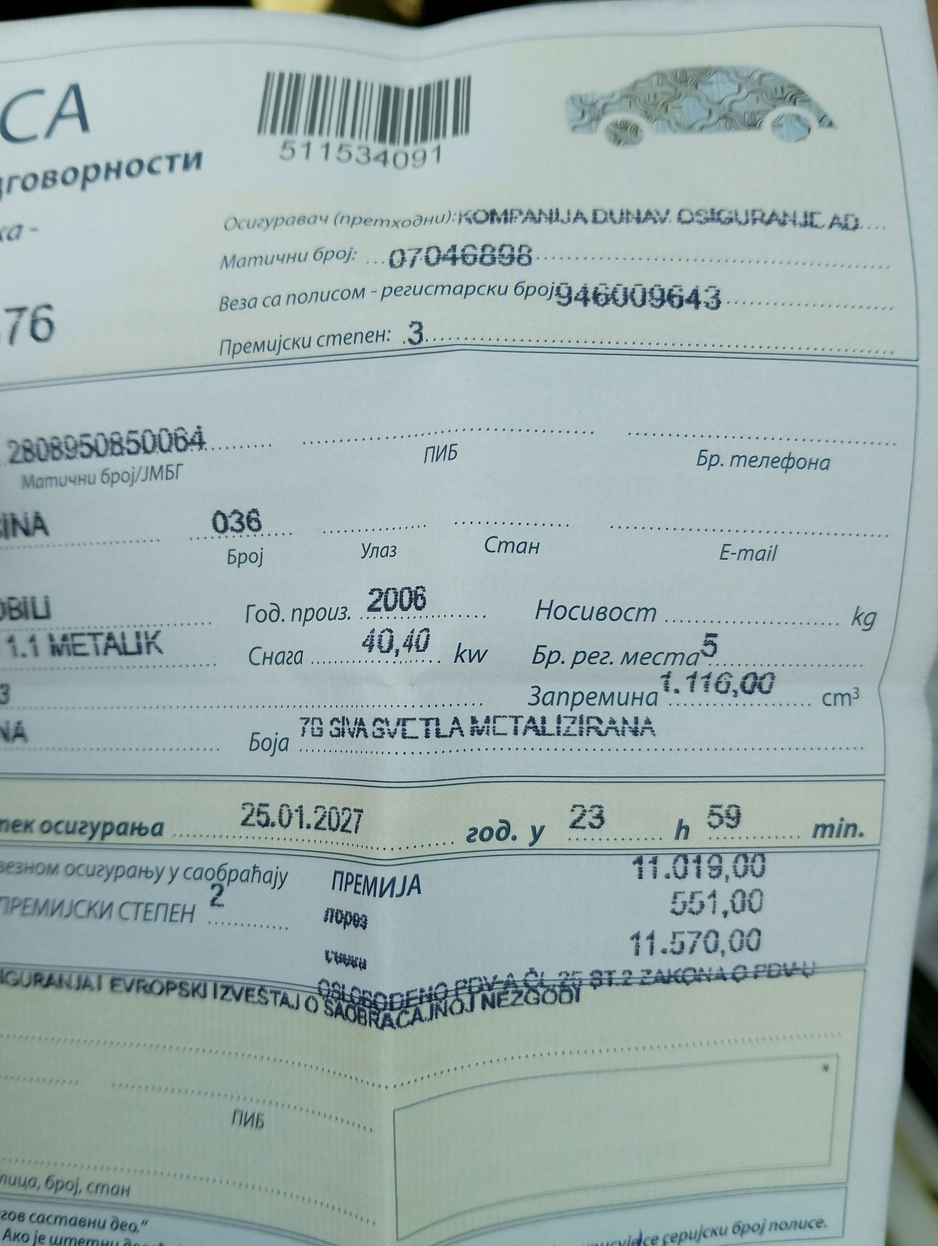 - Vozilo je korišćeno kao lično