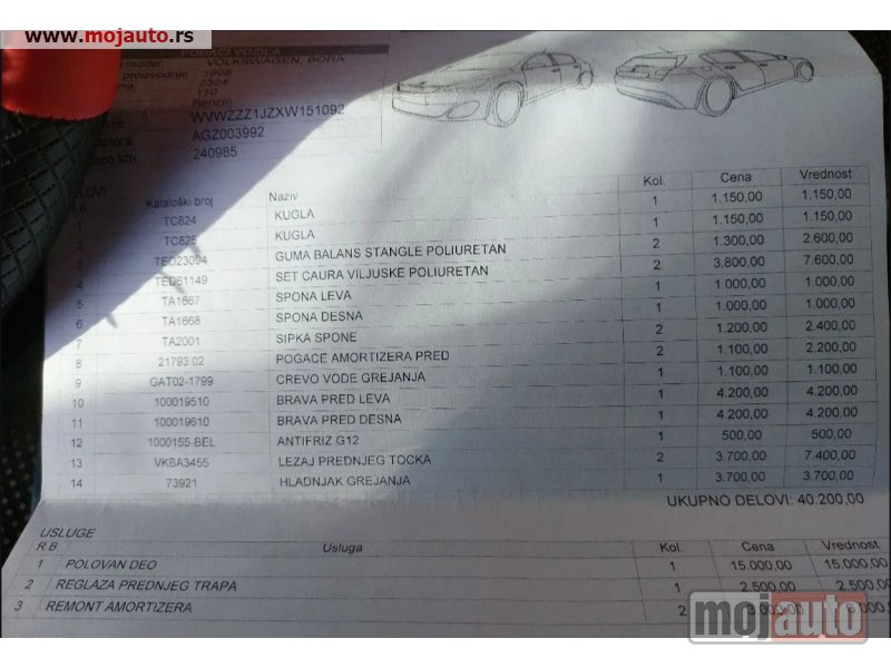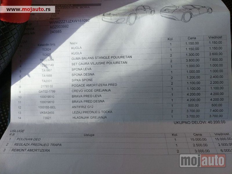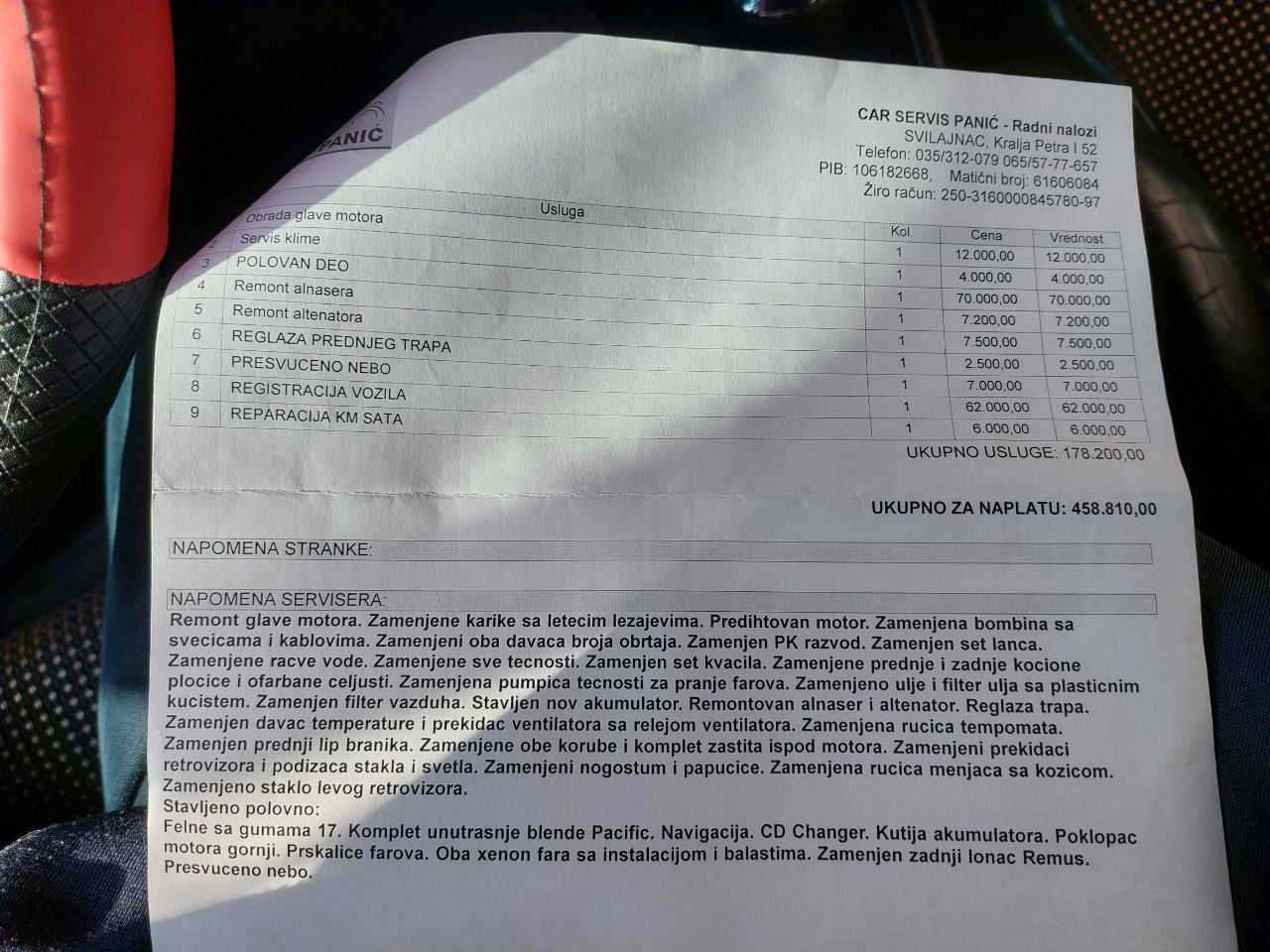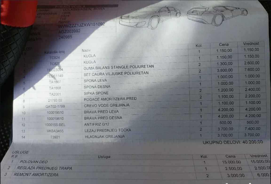Na autu nema šta nije odradjeno, i da ne bih nabrajao, ostavljam na zanjih par slika račun sa svime što je odradjeno.