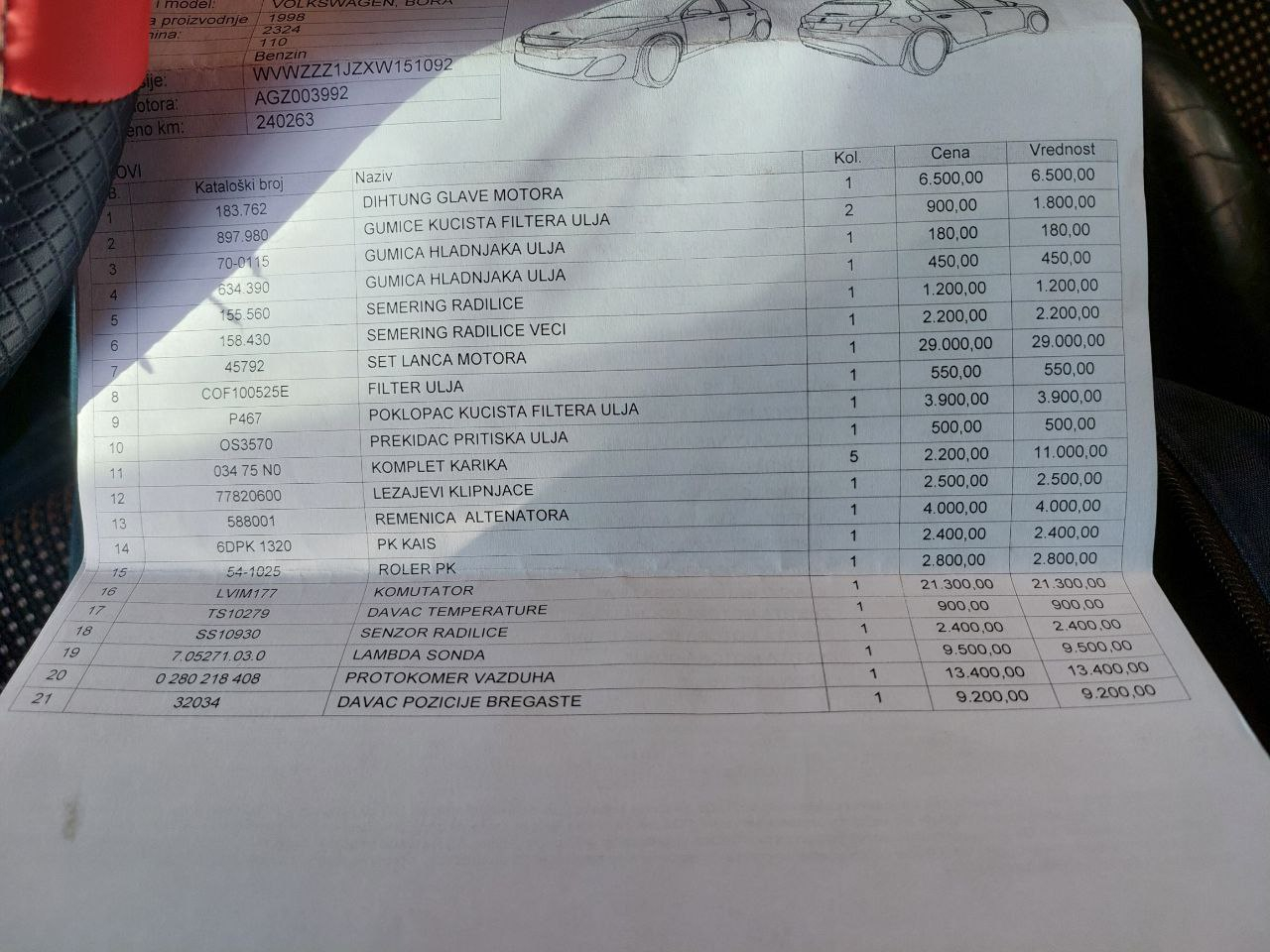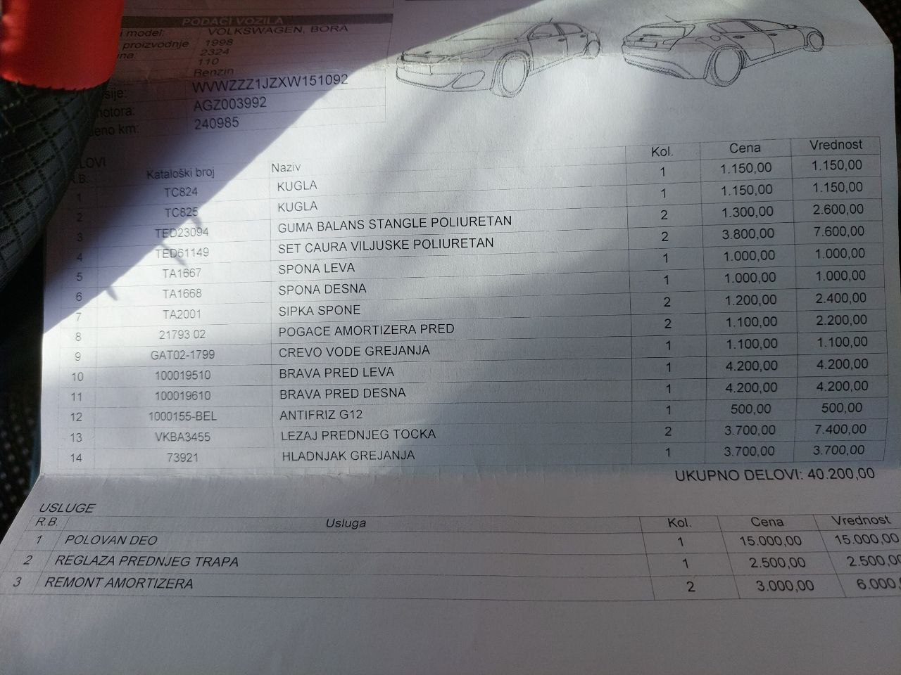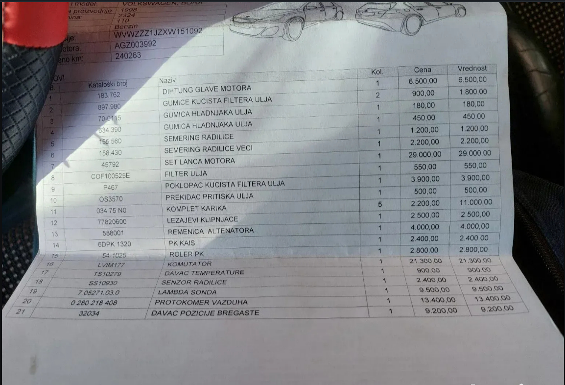 Na autu nema šta nije odradjeno, i da ne bih nabrajao, ostavljam na zanjih par slika račun sa svime što je odradjeno.
