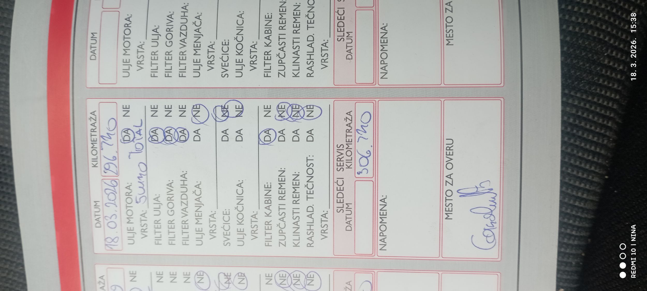 - Servisna knjižica Da