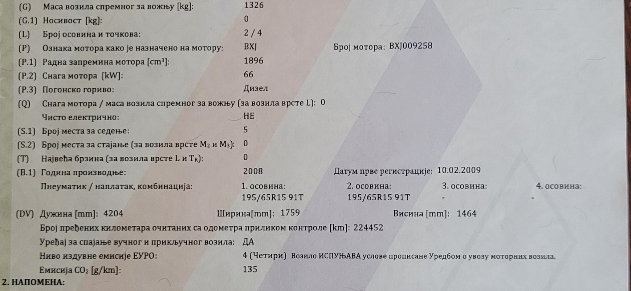 - Vozilo je polovno