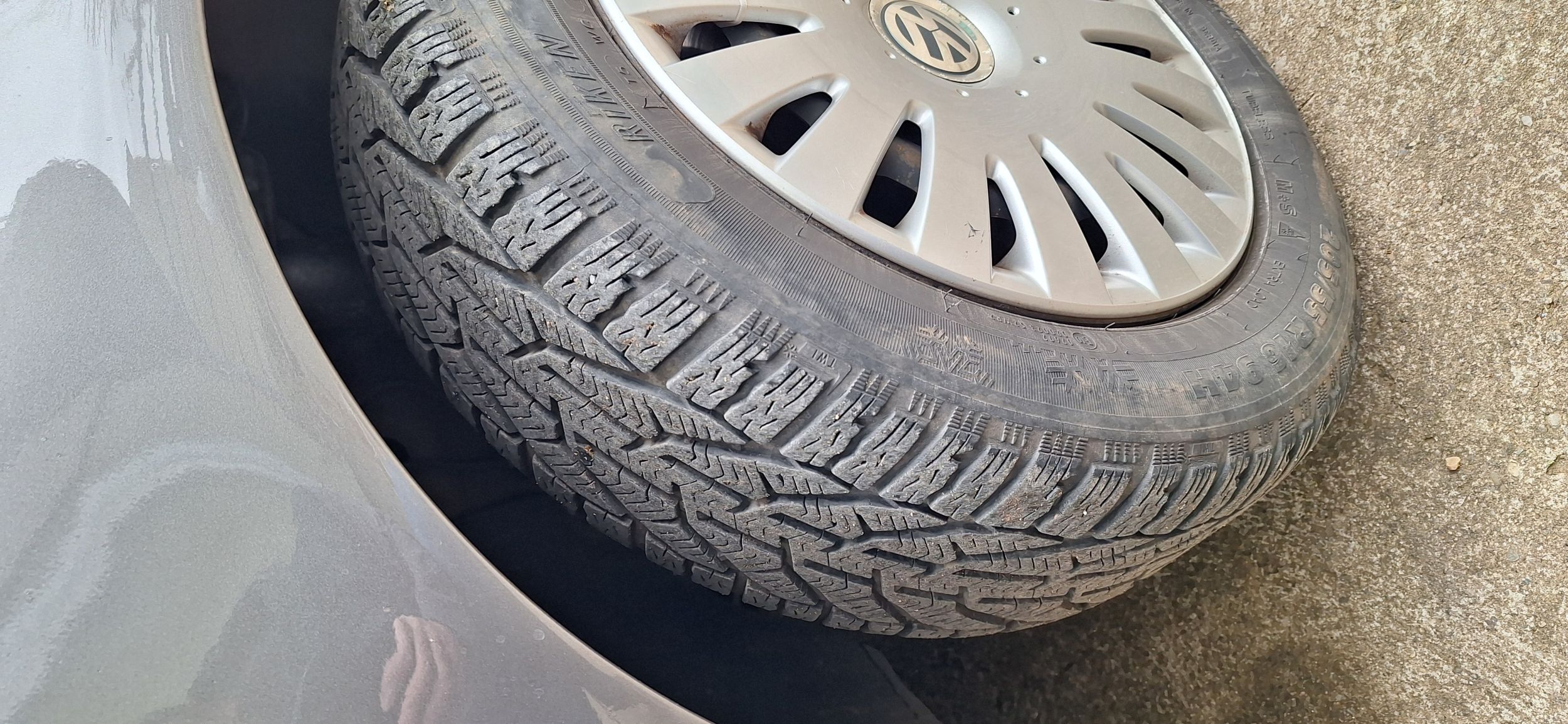 Ima zimske gume na čeličnim felnama sa dubokom šarom