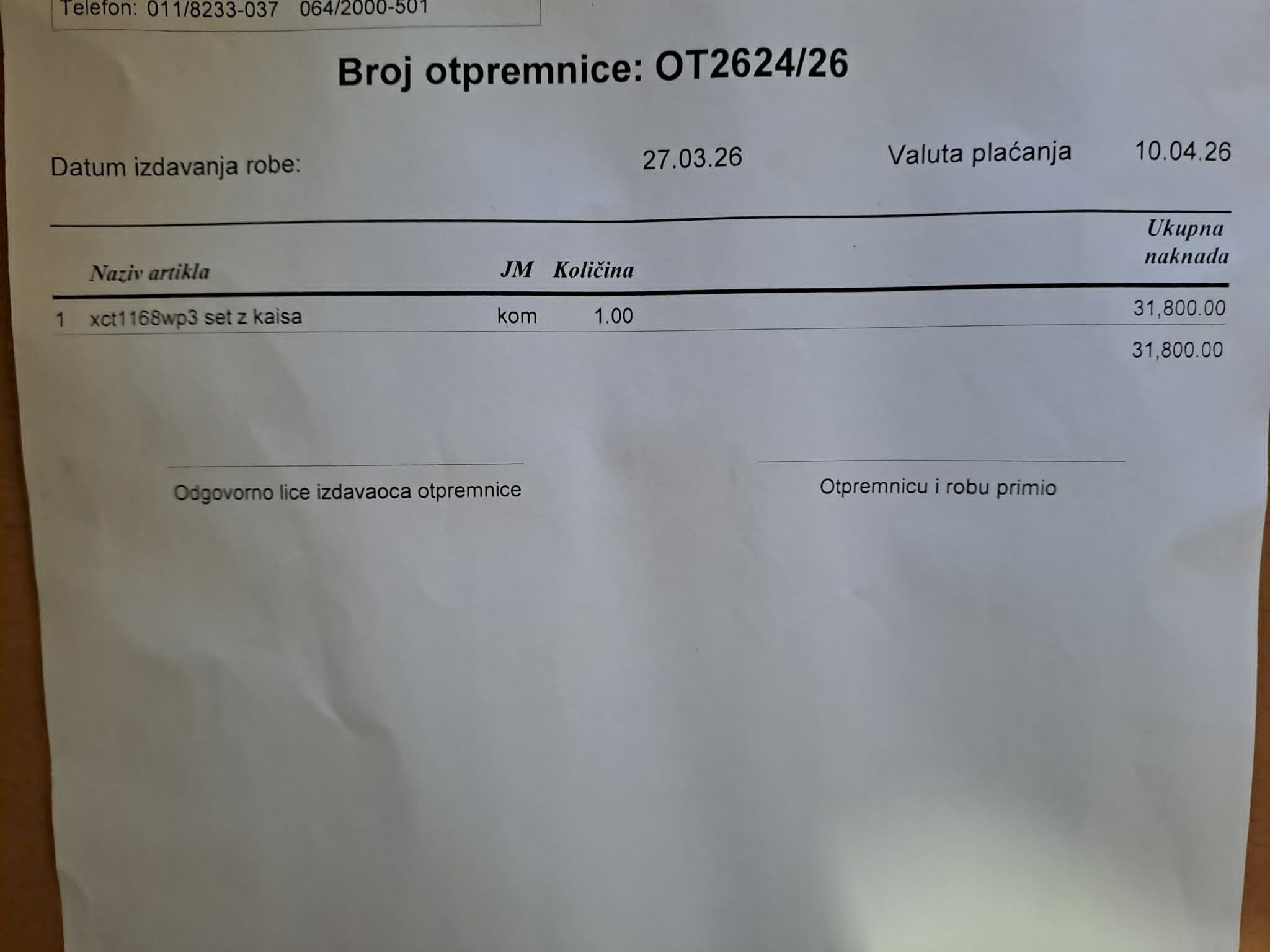 - Na ime kupca Ne