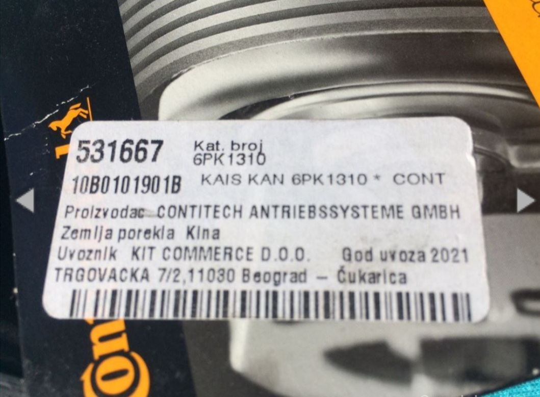 - Model - PK kaiš Continental 6PK1310