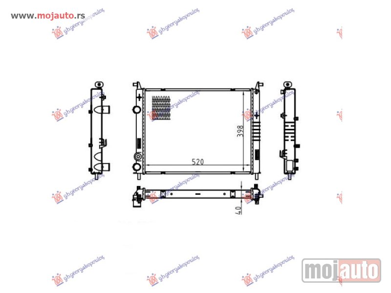 Opis: HLADNJAK MOTORA 1.9 DIZEL (520x378x42) 00-