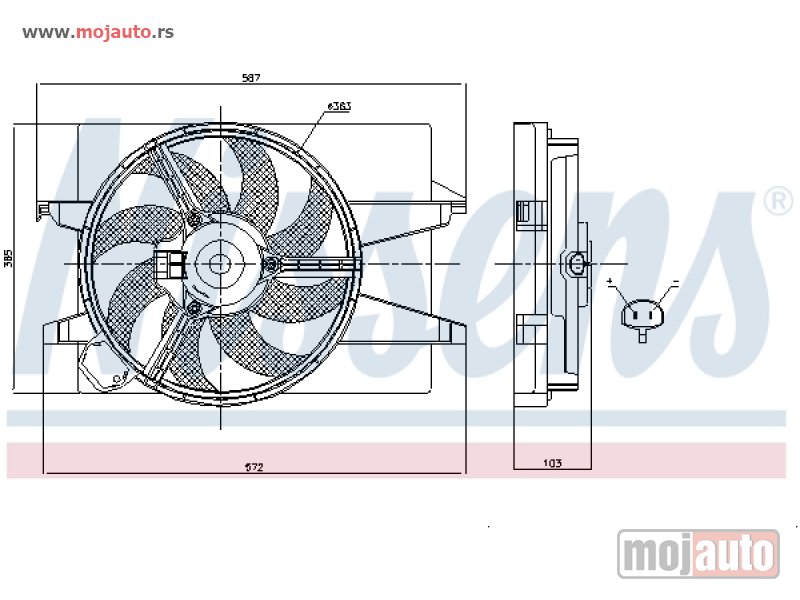Opis: VENTILATOR KOMPLET (BENZIN/DIZEL) (+AC) (DUGULJASTI KONEKTOR)