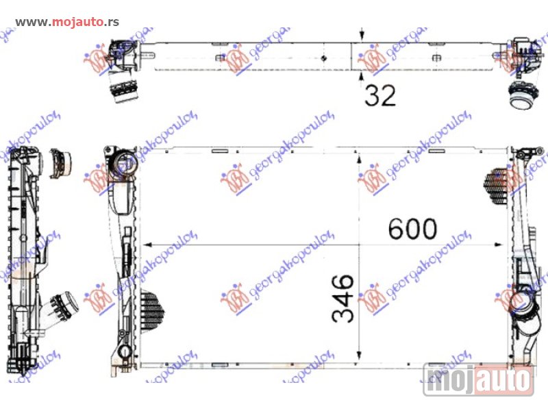 Opis: HLADNJAK MOTORA 3.0 (135i) BENZIN (MAN) - 2.0 (116D/118D/120D/123D) DIZEL (MANUAL/AUTOMATIC) (600x340x32) 1 TUBE (MAHLE BEHR)