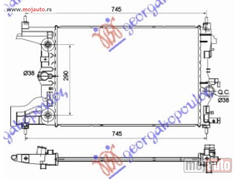 Opis: HLADNJAK MOTORA 1.6 BENZIN (AUTO) (-AC) (58x39x16)