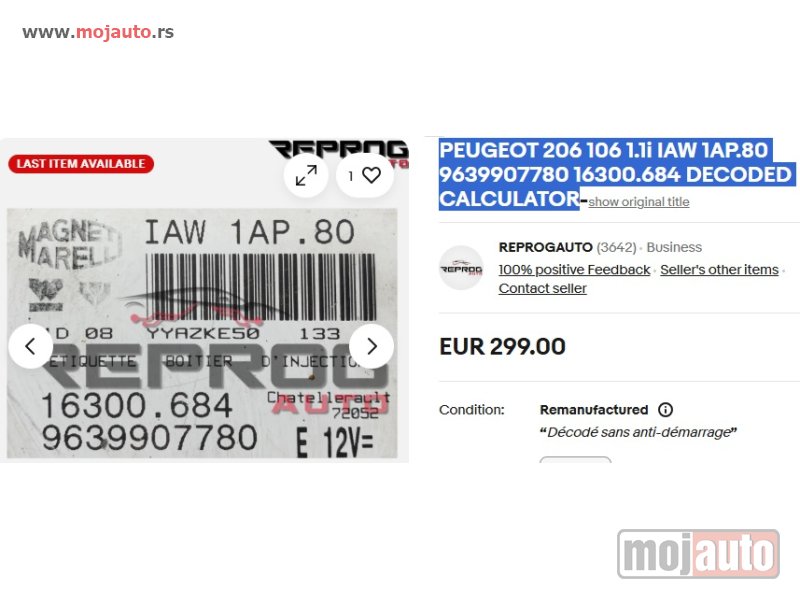 • Model - Pežo KOMPJUTER IAW 1AP.80 Magneti Marelli 16300.684 Citroen 9639907780 Peugeot