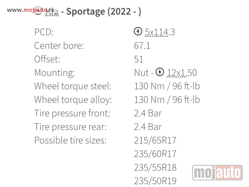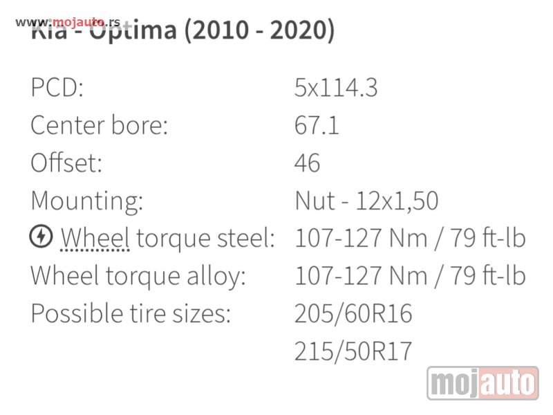 - Model - alu felne KIA 17,5x114.3