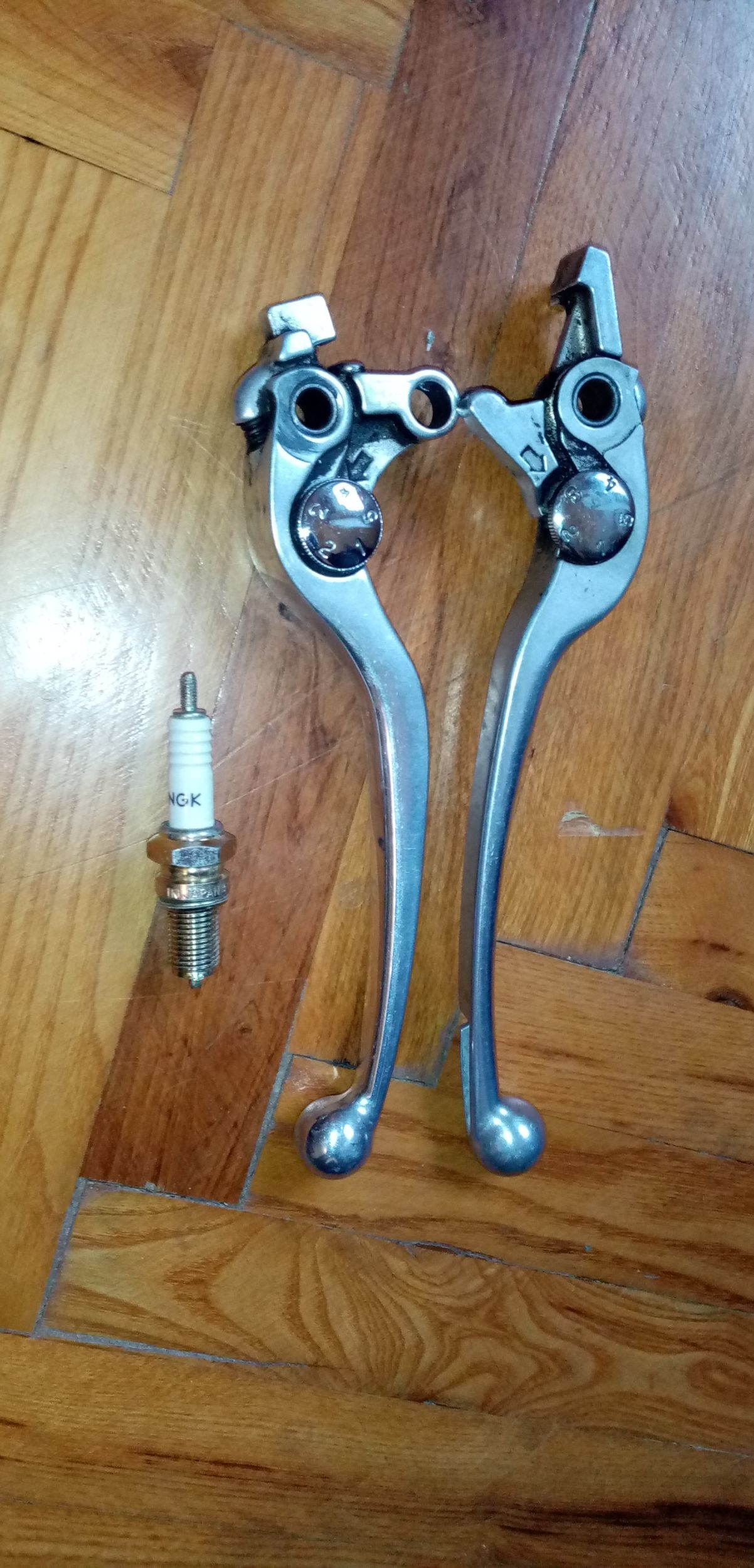 Prodajem dobro očuvane polovne ručice kocnice i kvačila, ali ne znam tačno za koje motocikle odgovaraju. Cena za obe je 30 eura. Uz njih poklanjam jednu novu svećicu NGK D8EA iz moto programa koja se koristi na mnogim modelima motocikala.