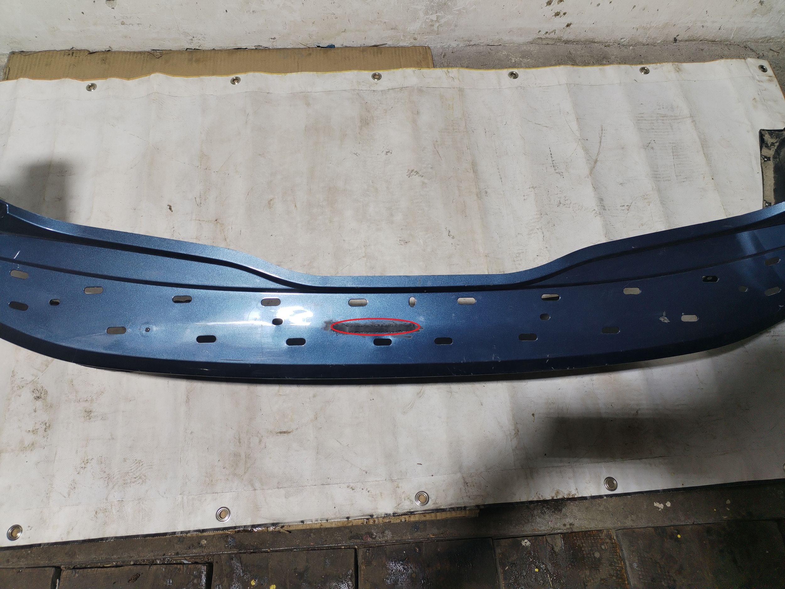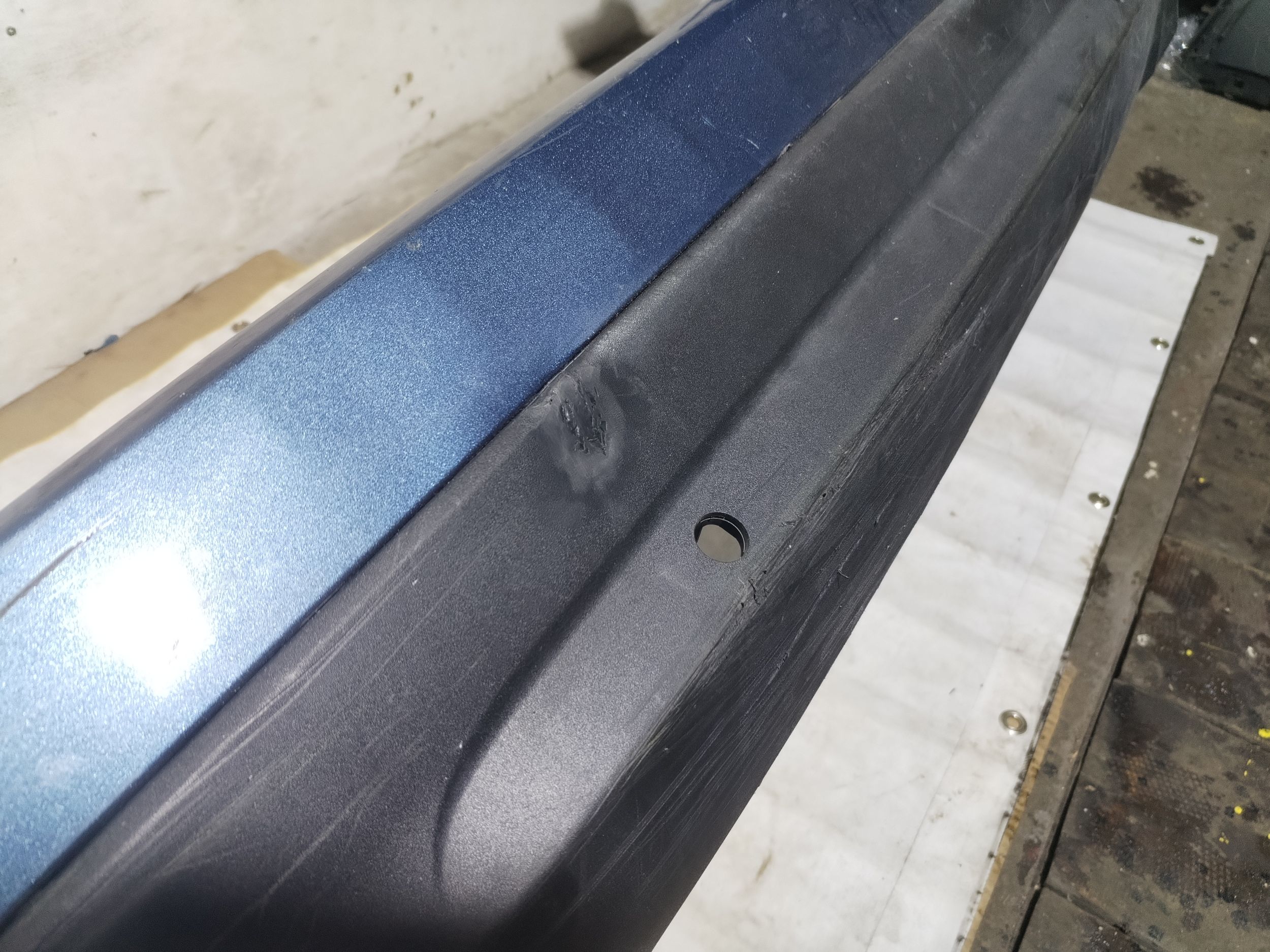 Branik je imao jednu naprslinu, koja je kvalitetno i profesionalno uradjena kod plasticara, pa je taj deo samo potrebno spremiti za farbanje i ofarbati, a mi smo to sve svakako posteno slikali, jer tako poslujemo. Taj deo svakako prekriva guma odozgo.