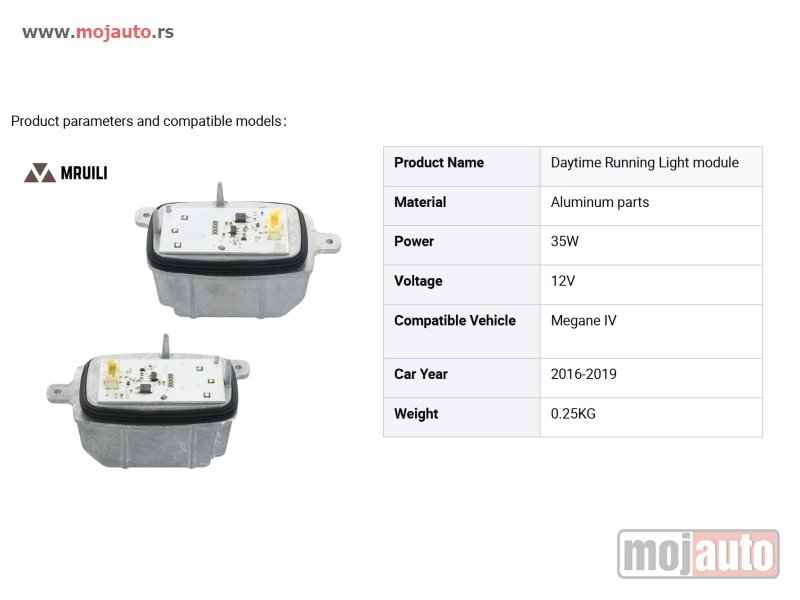 Na prodaju novi LED moduli za dnevna svetla (DRL) namenjeni za Renault Megane IV (2016-2022). Ako vam je dnevno svetlo u obliku slova "C" promenilo boju u žuto ili prestalo da radi, ovo je deo koji vam je potreban. Kataloški brojevi (OE oznake):