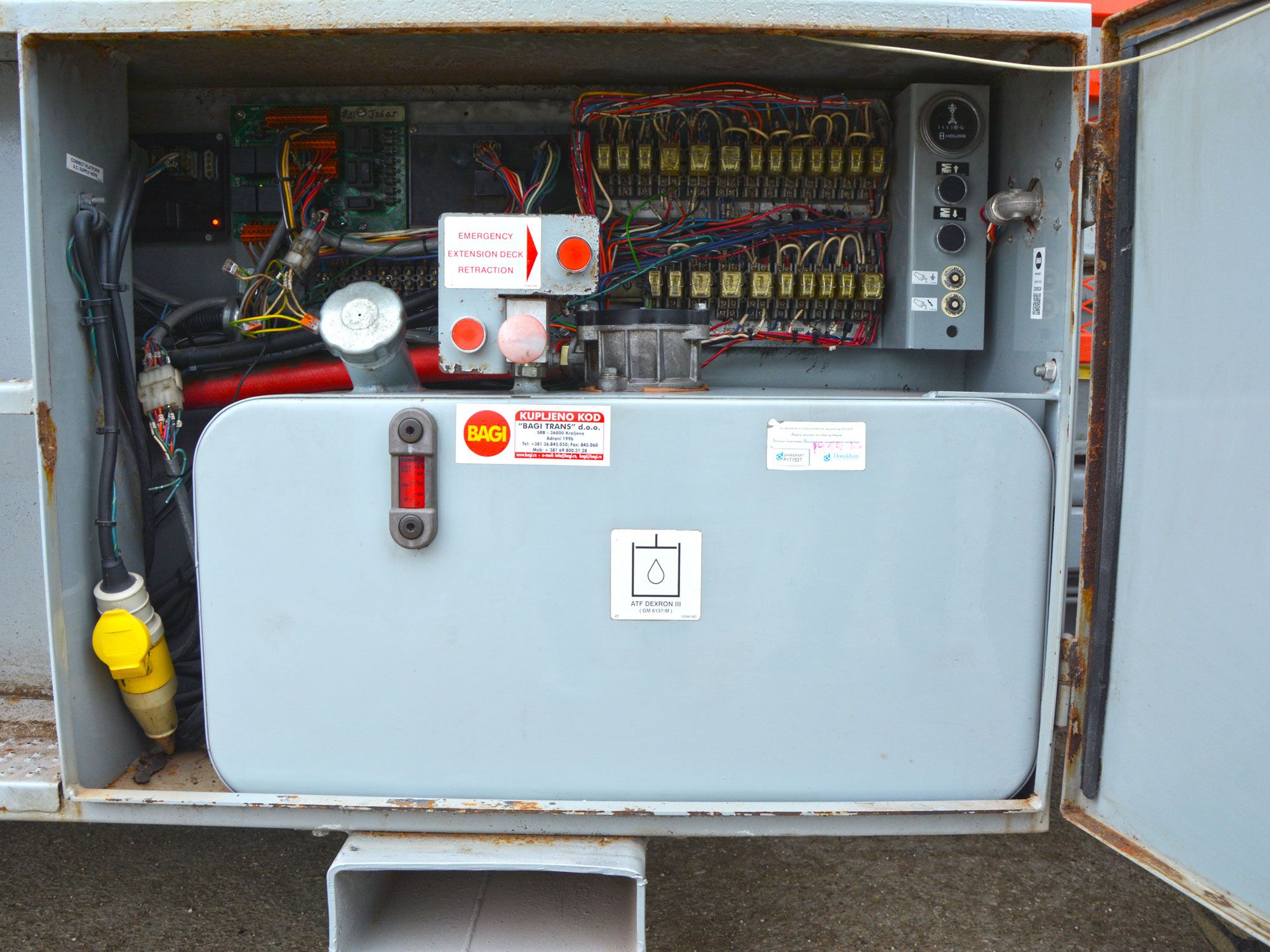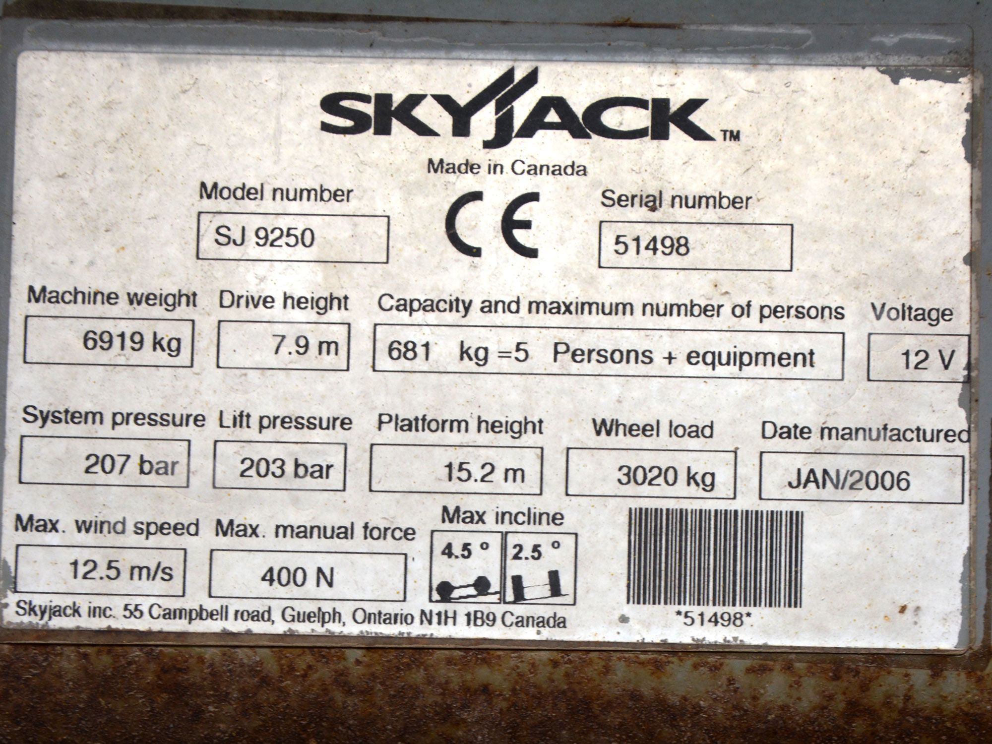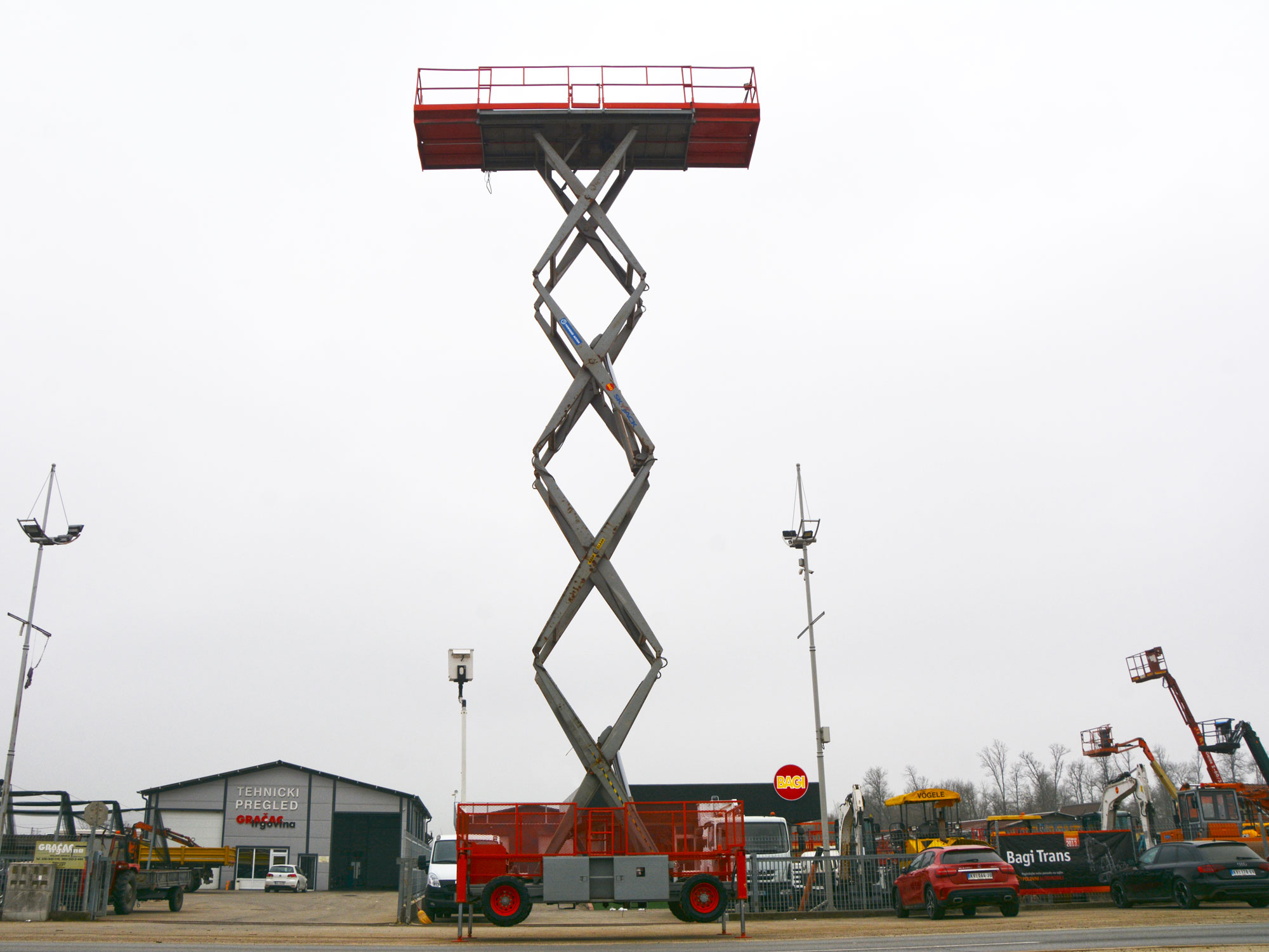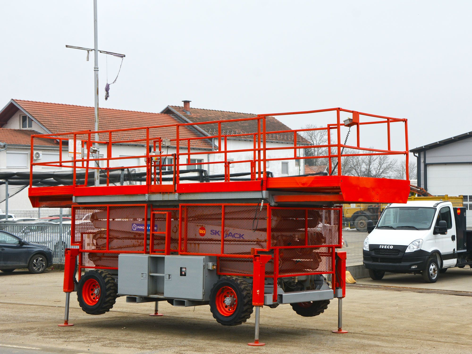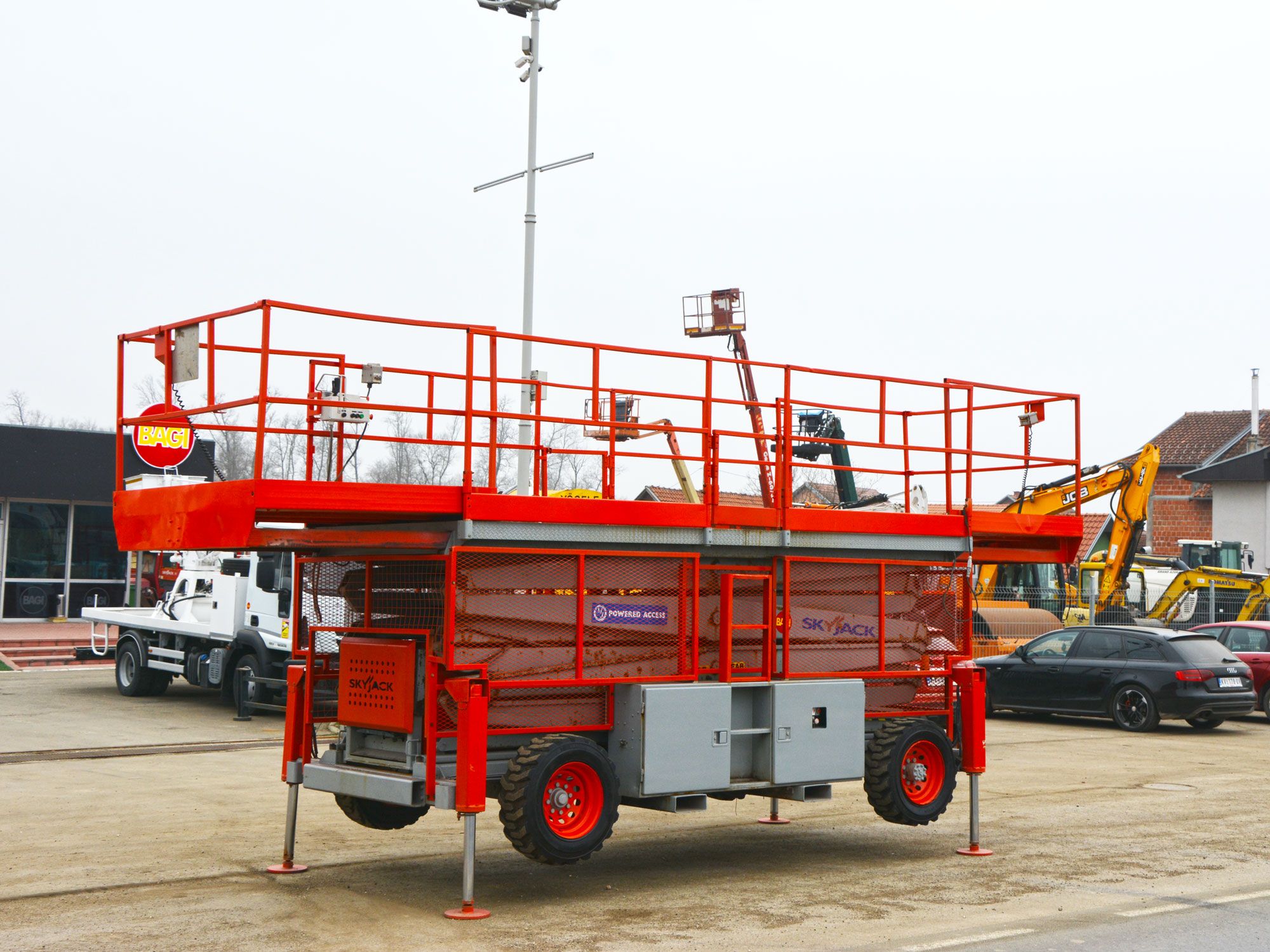 2006 GOD. SKYJACK SJ9250 SAMOHODNA MAKAZASTA PLATFORMA ZA RAD NA VISINI, 4X4, MOTOR KUBOTA 3 CILINDRA, 27KS, VODENO HLAĐENJE, 2478 RADNIH SATI, RADNA VISINA JE 17,5 METARA, NOSIVOST PLATFORME 681KG. PLATFORMA SE PRODUŽUJE SA OBE STRANE, DUŽINA PLATFORME JE 4,50M, A UKUPNA DUŽINA SA PRODUŽENIM STRANAMA JE 6,02M, INSTALACIJA 220V U PLATFORMI, ALARM ZA NAGIB I PREOPTEREĆENJE PLATFORME, AUTOMATSKA NIVELACIJA KORPE, MOGUĆNOST POJEDINAČNE NIVELACIJE STOPA, TRANSPORTNI USPON PLATFORME 35 STEPENI, GUME PUNJENE SILIKONOM.