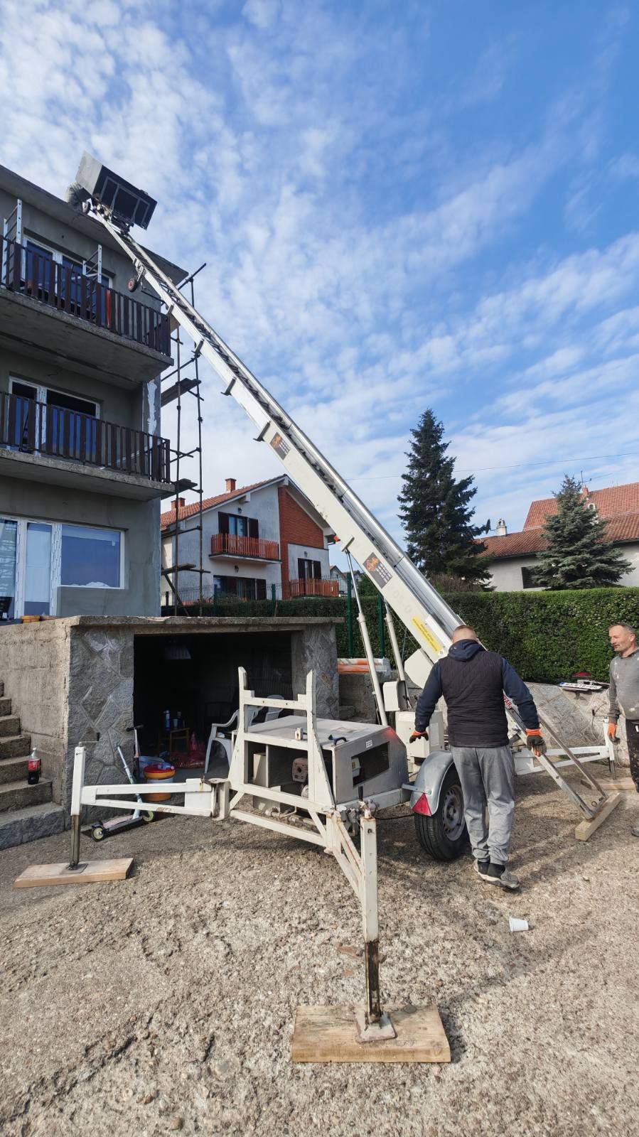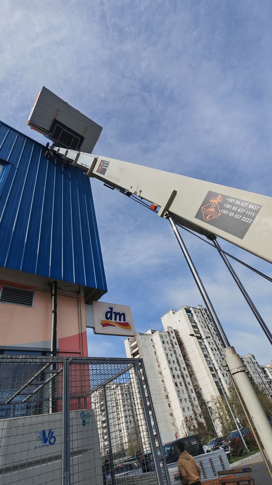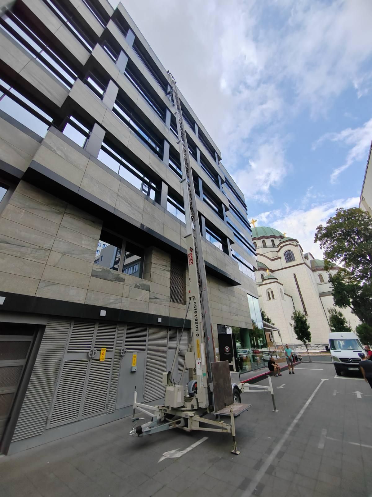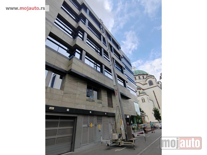 Mašina dostupna odmah – spremna za rad. Idealna za montažu fasada, stakla, panela, industriju i projekte gde je potreban veliki horizontalni dohvat.