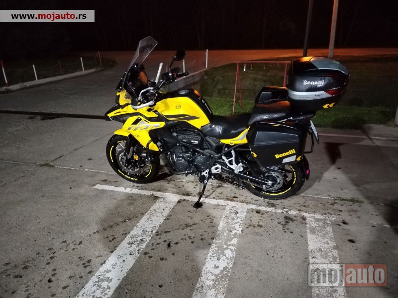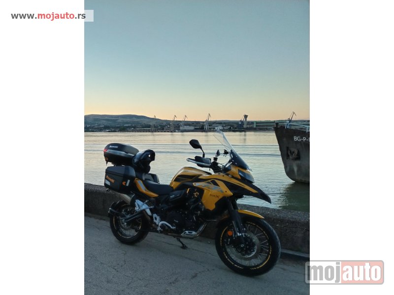 Benelli 502x, 2021godište u perfektom stanju i bez ikakvih ulaganja. Prelepog izgleda. Redovno održavan i servisiran. Izuzetno očuvan, garažiran. Urađeni sve servisi, zamenjene gume i lanac sa lančanicima. Bogat paket dodatne opreme (maglovke, nosač za telefon sa punjačem, eksterna kutija za alat, bočne prednje torbice, sva tri kofera, senzori pritiska u gumama, dva vizira, podmazivač lanca, nosač flaše, proširenje za nogaru, centralni štender. . . . ). Pouzdan i siguran motor, mali potrošač. Vozi se sa A2 kategorijom. Vlasnik sam lično.