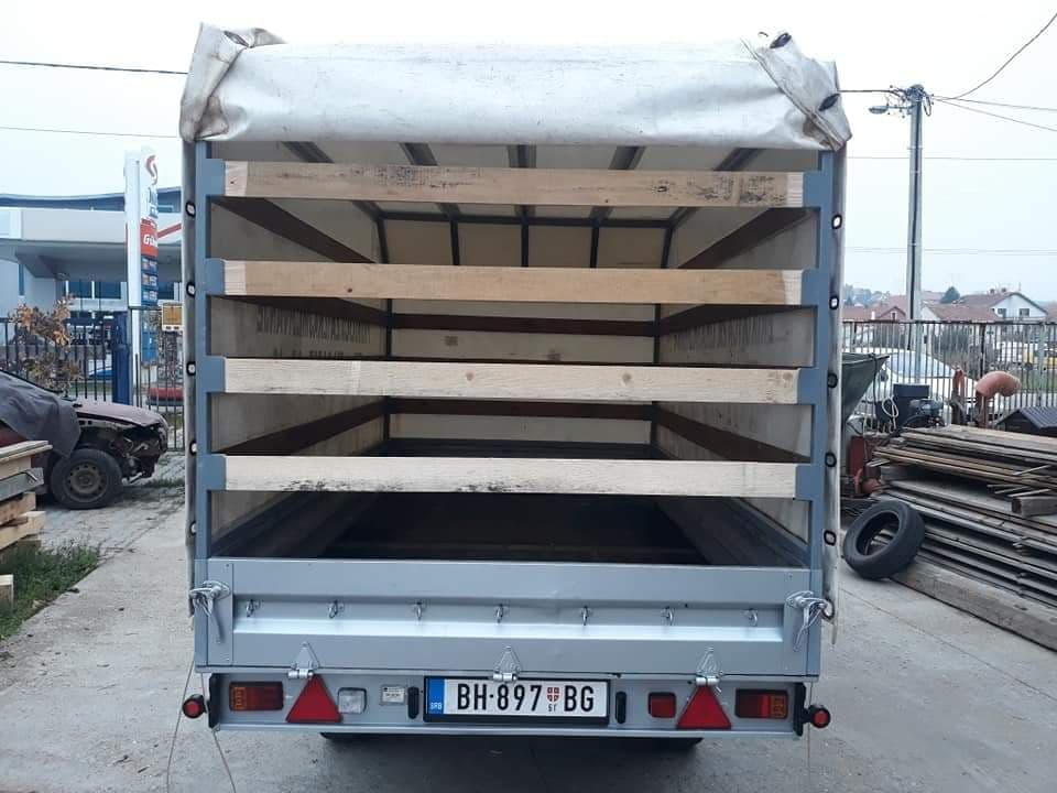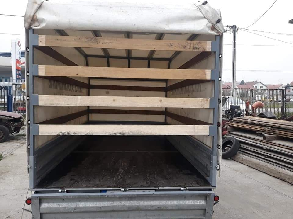UNUTRASNJA DUZINA PRIKOLICE JE 3.08m, UNUTRASNJA SIRINA 1.68m, UNUTRASNJA VISINA 1.65m..