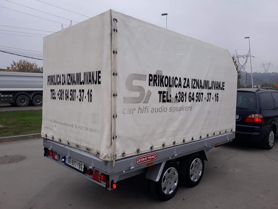 IZNAJMLJIVANJE AUTOPRIKOLICA SA CERADOM,KORISTE SE SVAKODNEVNO PO CELOJ EVROPI,, MOZE ZA SVE NAMENE,,, PO VEOMA POVOLJNIM CENAMA,PRIKOLICA SA RAVNOM PLATFORMOM JE NOVA, PROIZVEDENA 2007 GODINE.